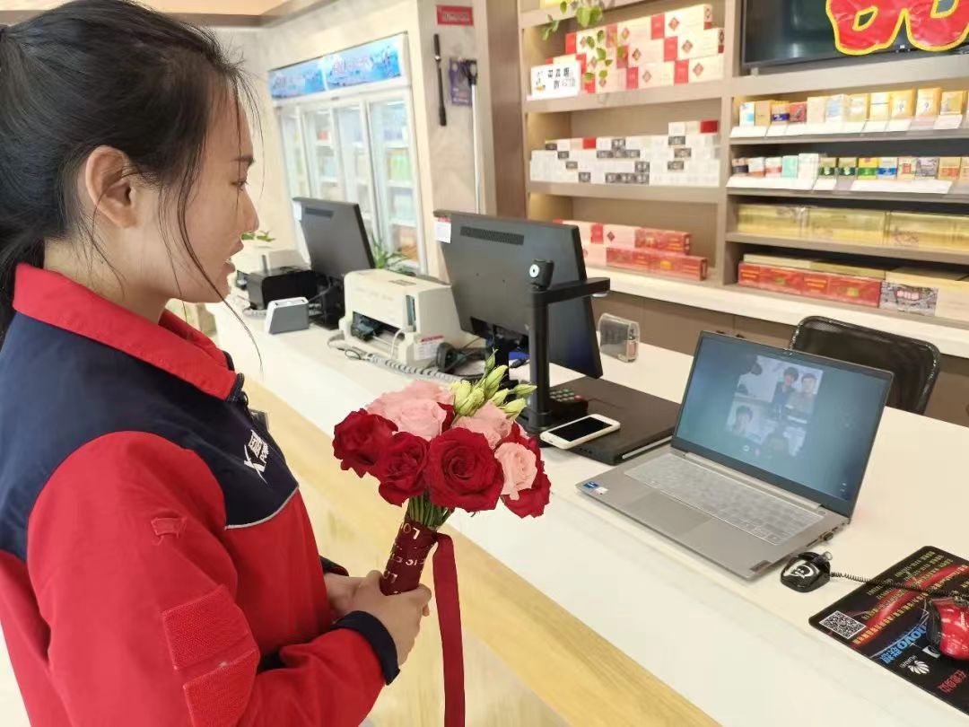 當日一大早,同事們忙完手頭的工作后,立刻為即將到來的婚禮準備起來,大家分工合作,吹氣球、貼喜字、包合婚餃子、調試視頻設備……很快,第六加油站就變身為簡單而又喜慶的婚房。10時10分,吉時到。梁晨和愛人隔著屏幕深情地凝望彼此,濃濃的愛意縈繞于心,卻只化為輕輕地叮囑,“做好防護,照顧好自己。”然后,兩人齊齊開口,脆生生地對著視頻里的四老喊過去,“爸,媽,請喝茶。”。屏幕那端,四位老人看到這一幕都忍不住紅了眼眶,“好!好!”同事們隨后給梁晨送上鮮花,親朋好友也線上送去祝福。新婚的喜悅包裹著甜蜜的感動,溫暖了在場的每一個人。