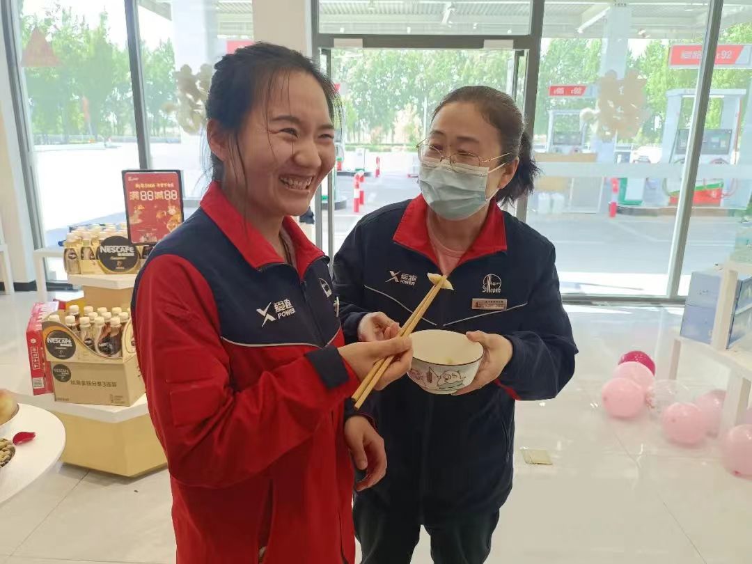 “終身大事,還是要有儀式感,不能讓小兩口留遺憾,特殊時期正是體現我們企業關懷的時候!”得知梁晨簡辦婚禮的消息,棗強區域經營部艾紅智立即謀劃,在不違反疫情防控政策、不耽誤加油站正常工作的情況下,積極為梁晨籌備婚禮,發動員工們愛心“眾籌”婚慶物資。“我們站有春節寫對聯的紅紙,我會剪喜字,婚禮現場的喜字我包了!” “我們站還有上次搞活動的氣球。”“我們站有蘋果……”一時間,棗強區域經營部各站紛紛掏出“家底”,公司領導和同事們爭相表達祝福,溫暖和幸福一股腦地朝梁晨涌來。