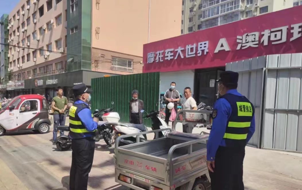 市區和平路中心街至紅旗大街路段內售賣電動自行車的門店眾多,不少門店將電動自行車擺放在門店前的便道上進行售賣,不僅影響了市容市貌,還妨礙市民通行,堵塞交通。為此,綜合執法支隊開展專項整治行動,組織精干執法力量依法依規對電動自行車銷售門店進行規范管理,嚴控店外占道經營、侵占車位等行為。