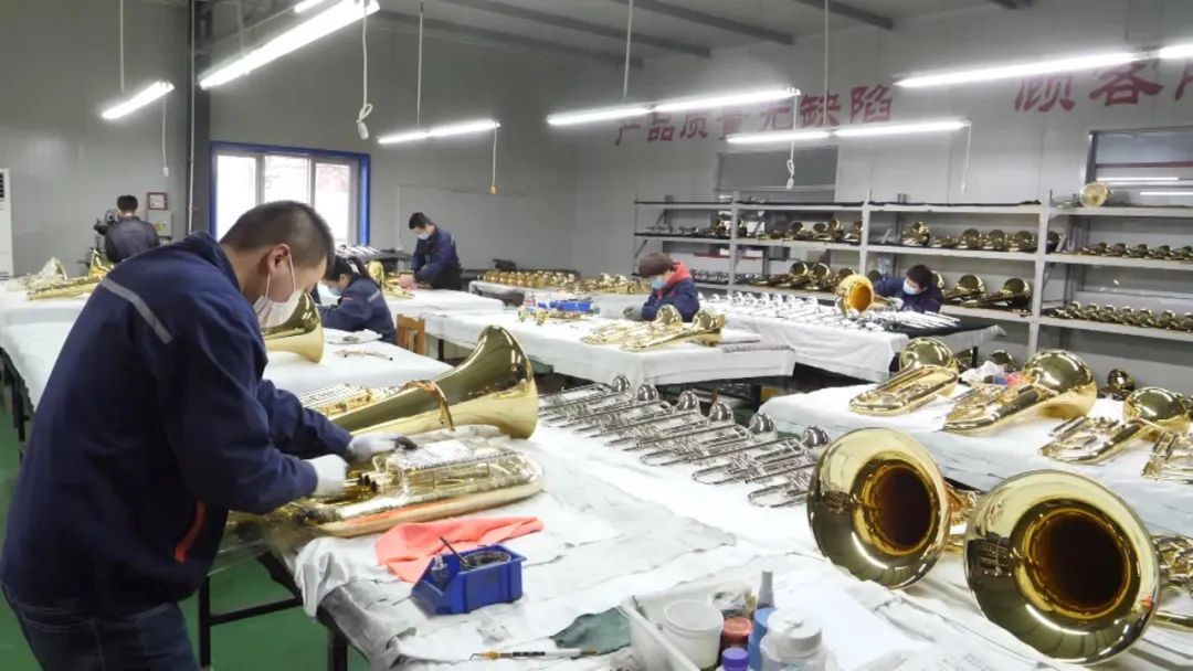 樂器企業生產車間內,工人在加緊生產。武強縣融媒體中心供圖