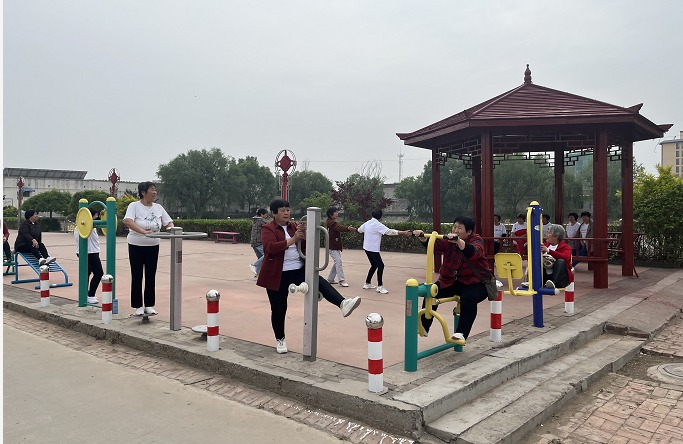 村民們?cè)谖幕瘡V場(chǎng)休閑娛樂(lè)。深州市融媒體中心供圖