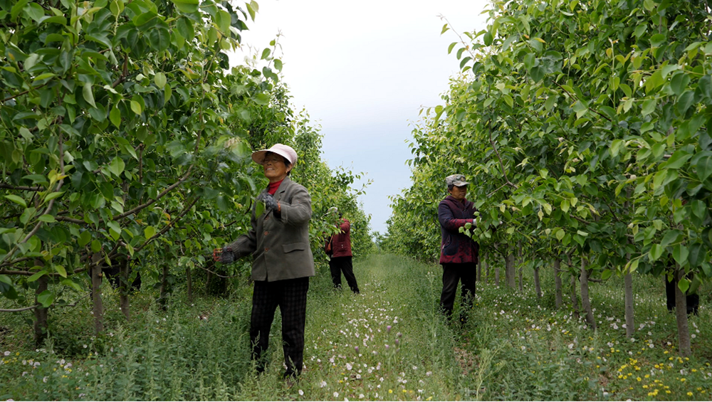 眼下正是梨樹疏果的最佳時節。在衡水市阜城縣阜城鎮馮塔頭村的千畝密植梨園里,梨樹枝繁葉茂,郁郁蔥蔥,拇指般大小的幼梨掛在枝頭,果農們正在給梨樹疏果,期盼今年有個好收成。近年來,阜城鎮充分發揮資源優勢,因地制宜不斷優化產業結構、完善產業鏈條,有效發揮專業合作社帶動引領作用,推動特色種植加快發展,幫助農民實現就近就業,不斷促進農業增效、農民增收。