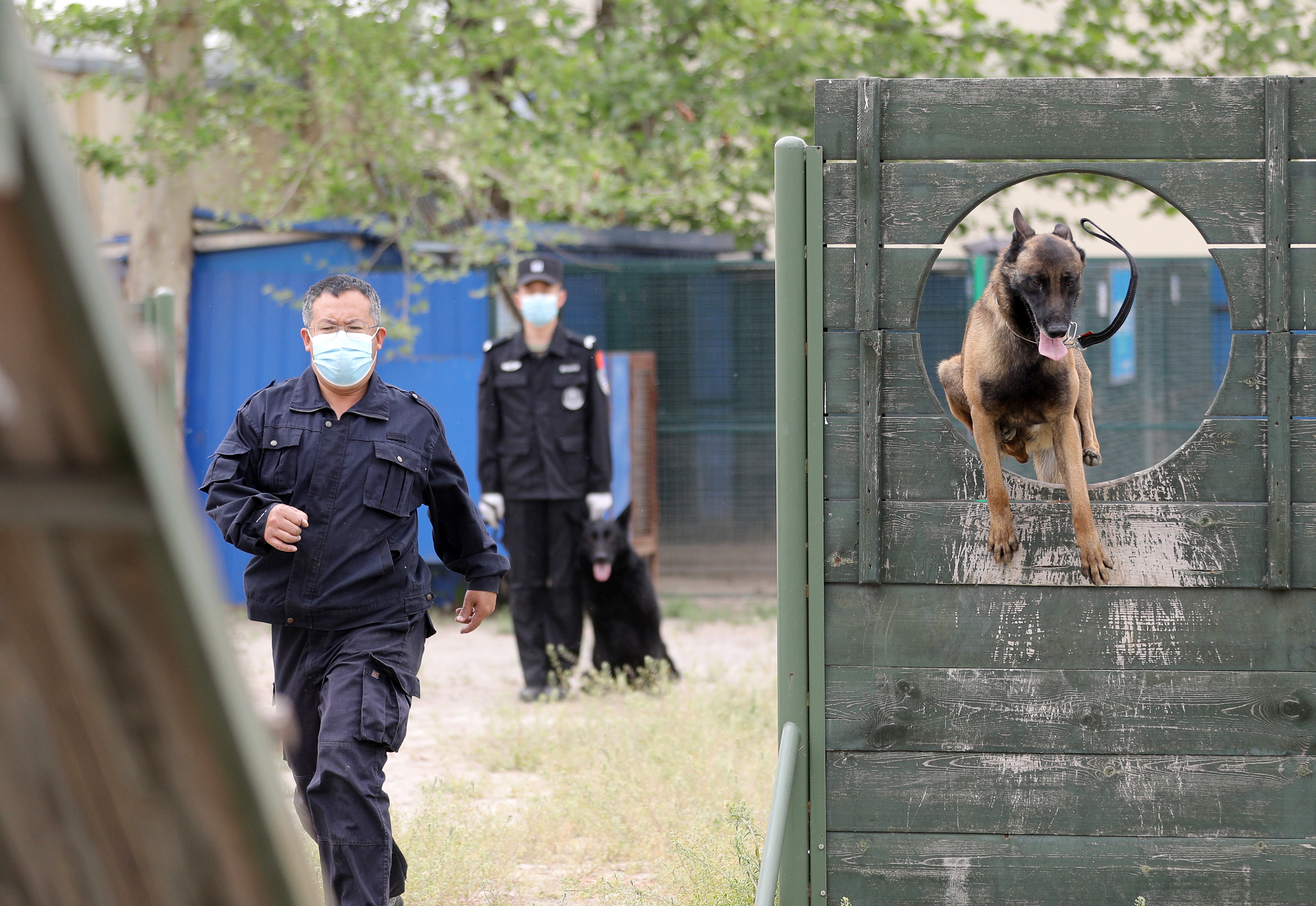 在刑偵支隊(duì)警犬基地,民警們正帶領(lǐng)著他們的特殊“戰(zhàn)友”——警犬進(jìn)行訓(xùn)練。在民警簡(jiǎn)單明確的指令下,警犬迅速地通過訓(xùn)練場(chǎng)地上一個(gè)個(gè)復(fù)雜的障礙。在模擬的交通卡口,得到指令的警犬一下子竄到駕駛窗,將“嫌疑人”撕咬出來。他們?cè)谟?xùn)練場(chǎng)上不斷地摸爬滾打,只為了在面對(duì)違法犯罪分子的關(guān)鍵時(shí)刻那迎頭一擊!