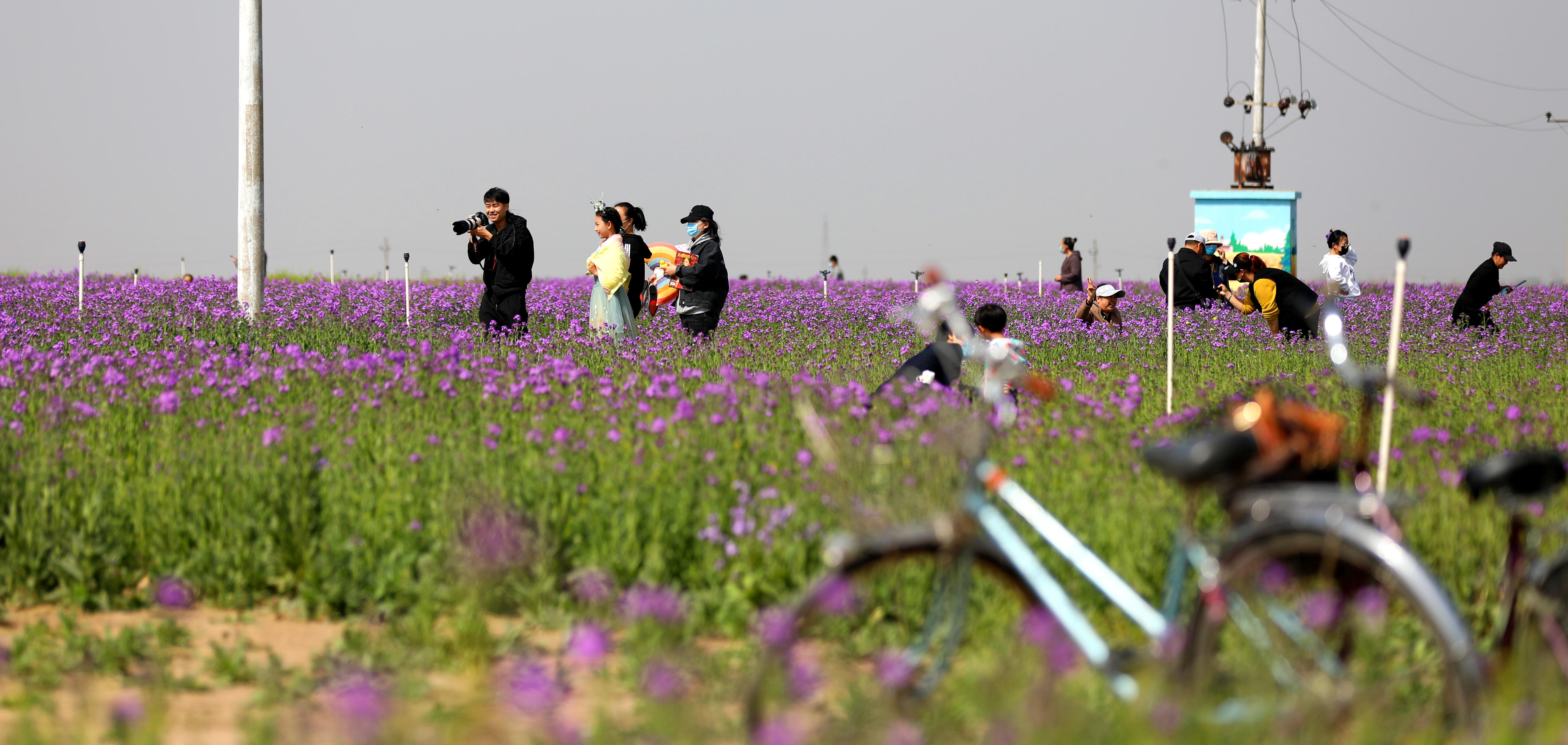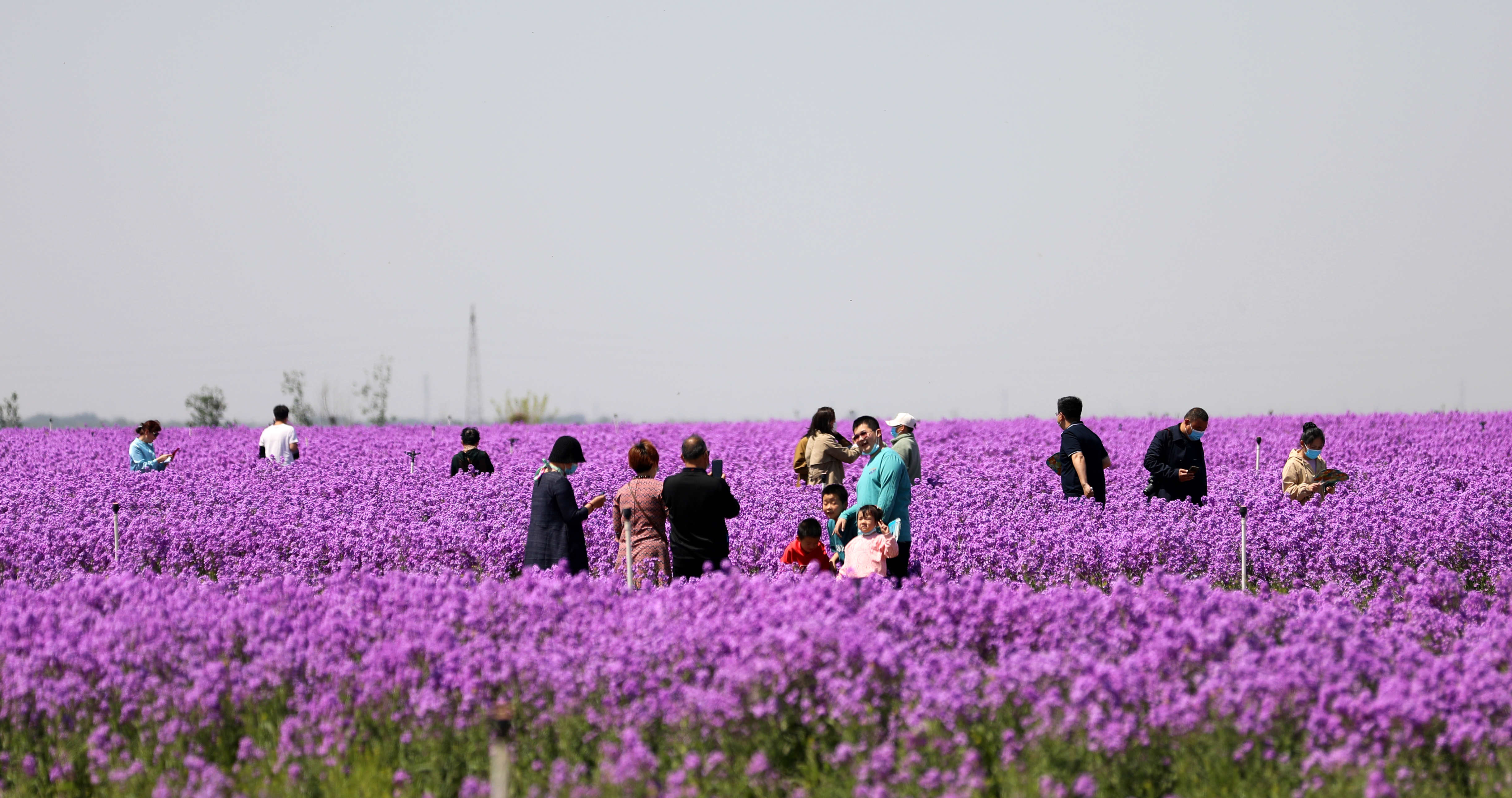 近日,在河北衡水湖畔的大地花海,百畝藍香芥進入盛花期,艷麗奪目的紫色花朵隨風擺動,陣陣花香沁人心脾。慕名而來的游客們漫步在花海中,拍照、駐足,定格這最美的瞬間。據悉,藍香芥花期為每年的4月至6月。