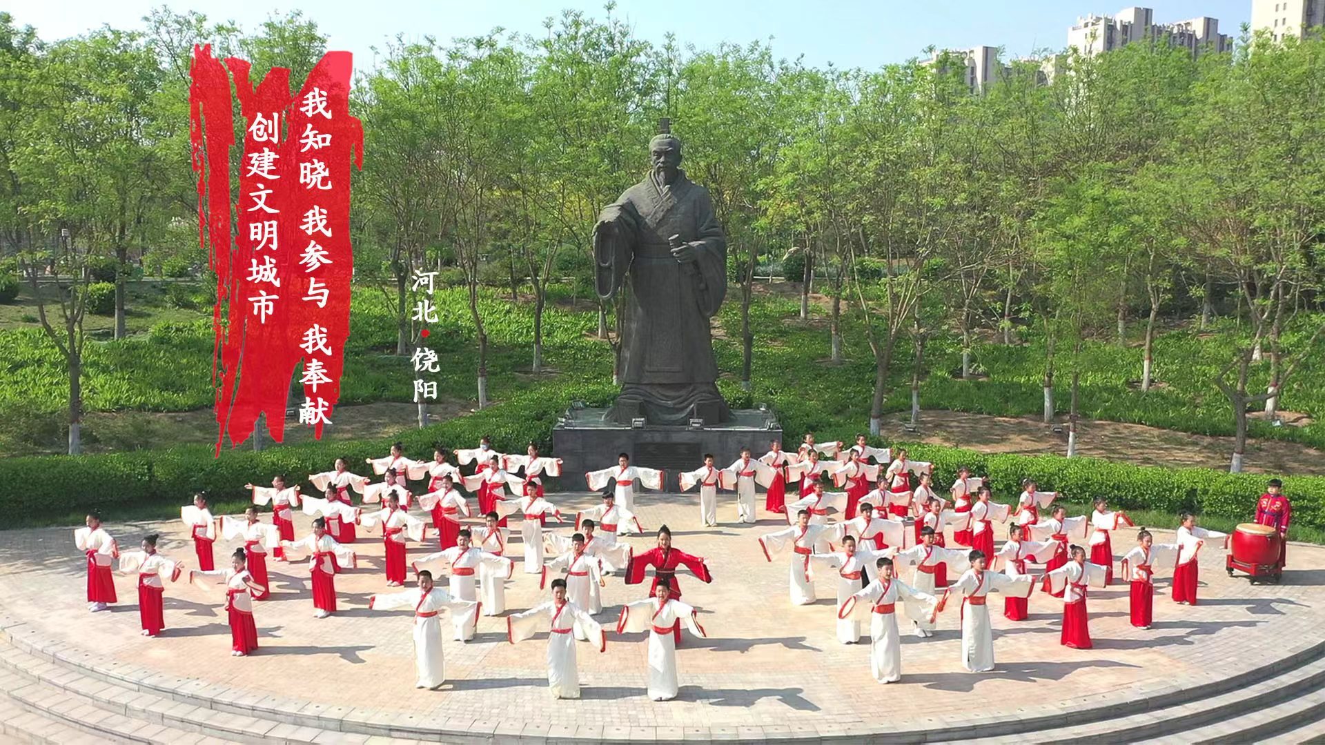 饒陽縣第二實驗小學在詩經廣場進行《詩經》誦讀,向人們展示傳統文化之美。饒陽縣融媒體中心供圖