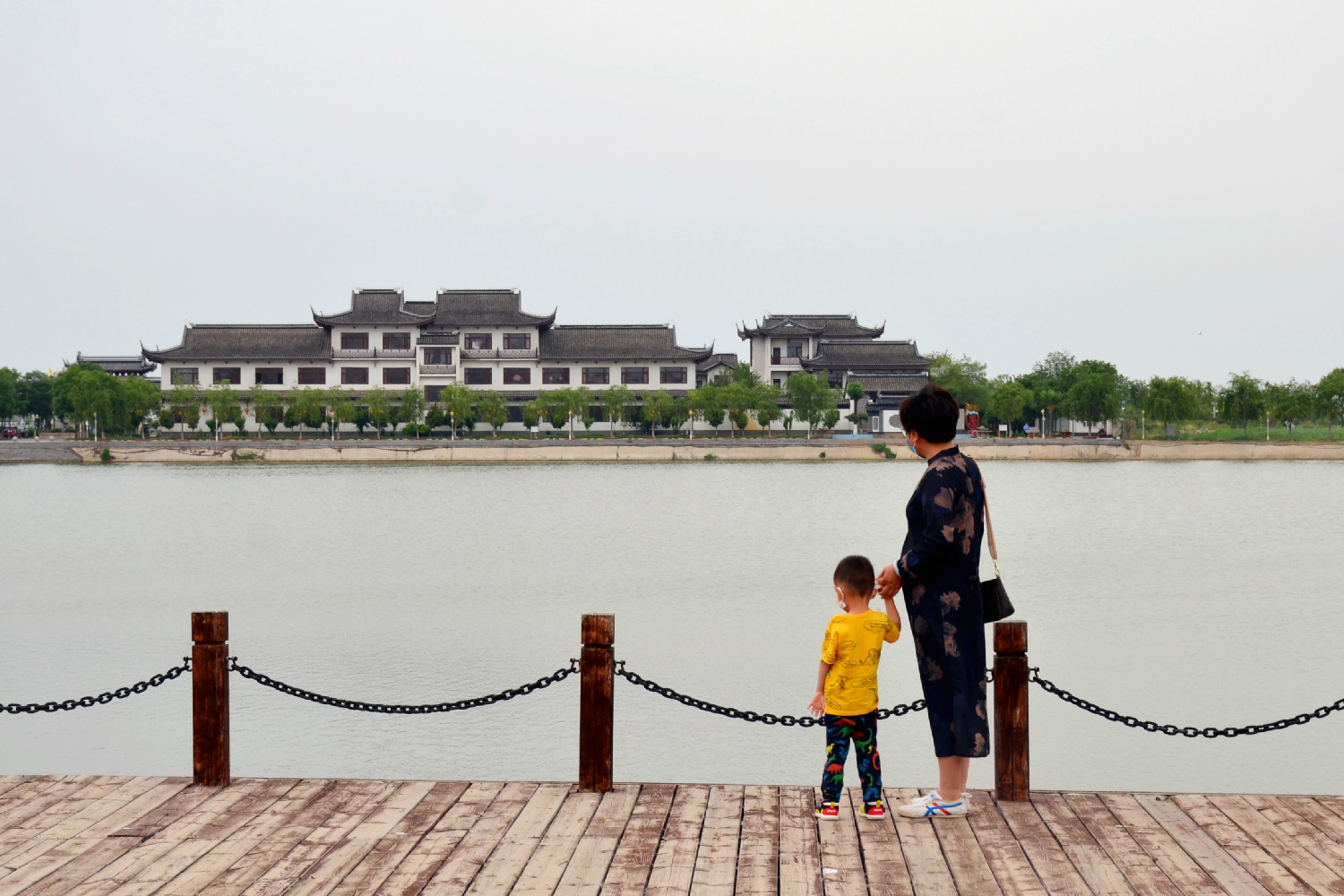濱湖公園內,人們正在湖邊賞景。賈瑞潔 攝