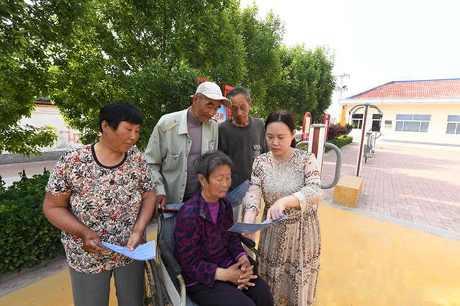 景縣行政審批局工作人員向村民介紹“政務服務·裕農通”綜合服務平臺。高雷 攝