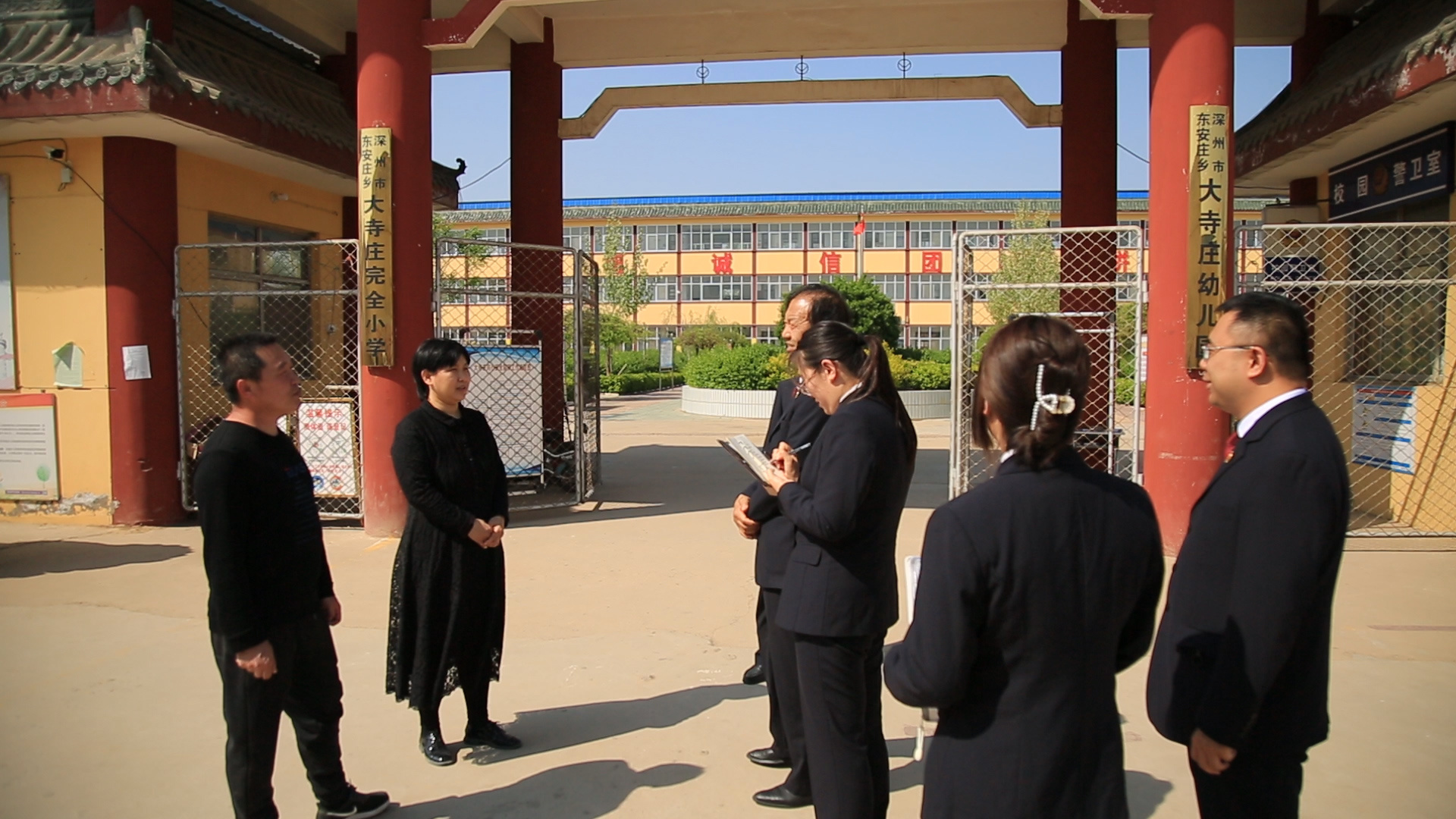 檢察人員走訪調(diào)研學(xué)校環(huán)境污染問(wèn)題。深州市融媒體中心供圖
