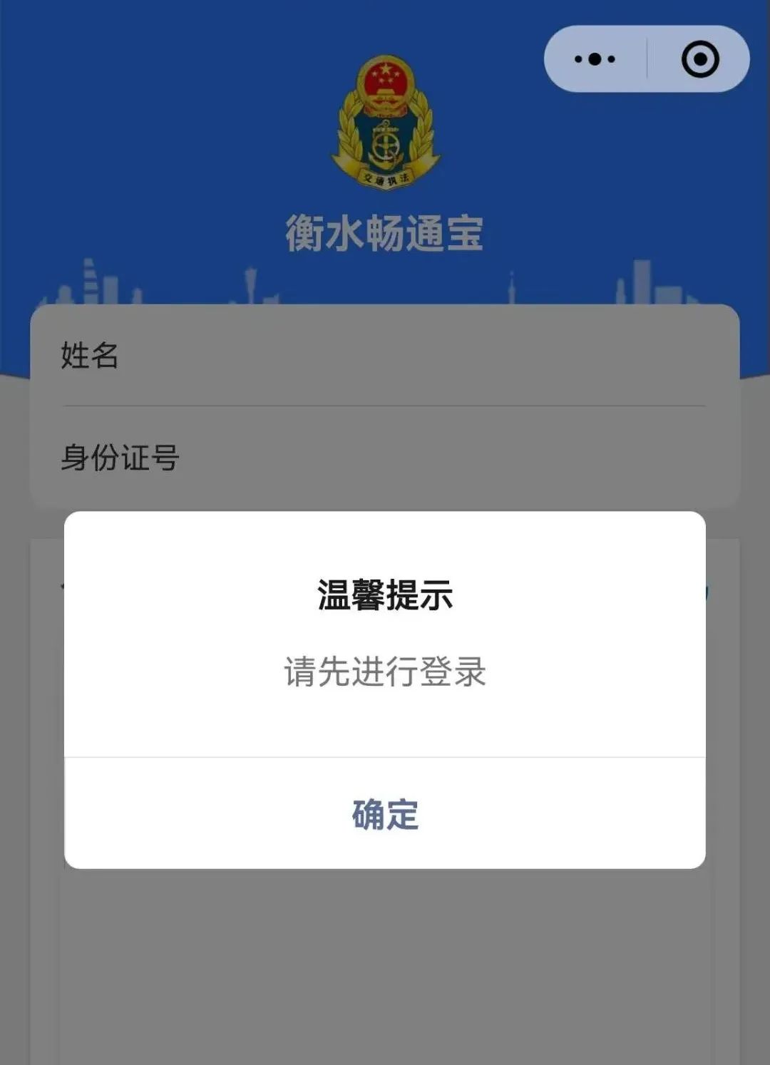 “衡水暢通寶”微信小程序