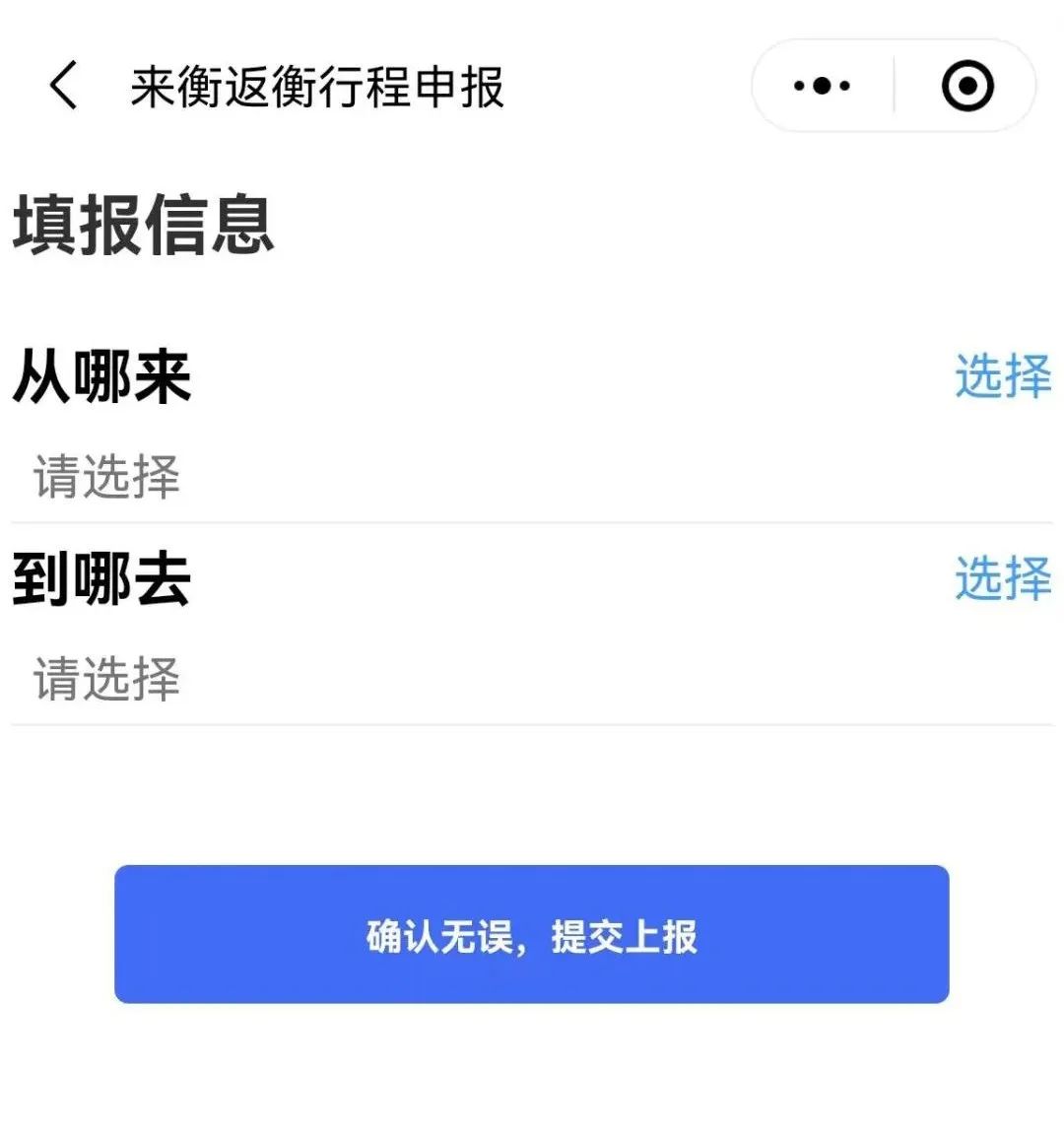 點擊下方行程申報選擇始發(fā)地和終點地后則登記成功