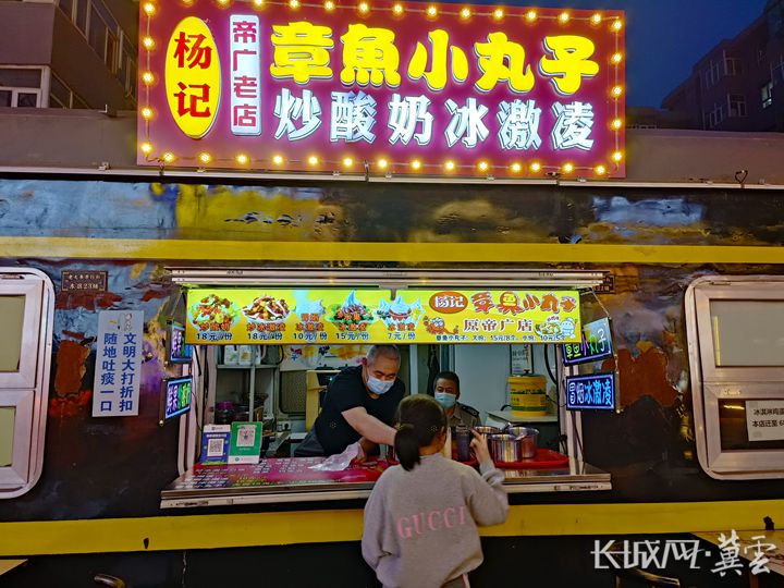 老楊做這一行已經20多年了,2021年春節前,京張鐵路老站舊址被開發成了老火車步行街。“我覺得這條街既有文化底蘊,又在公園附近,人流肯定少不了,就從帝廣商業街搬了過來。現在每天下午5點多開始上人,到深夜熱鬧勁兒才過,收入不錯,足夠支應一家子的開銷。”老楊說著,又開始起鍋燒油。