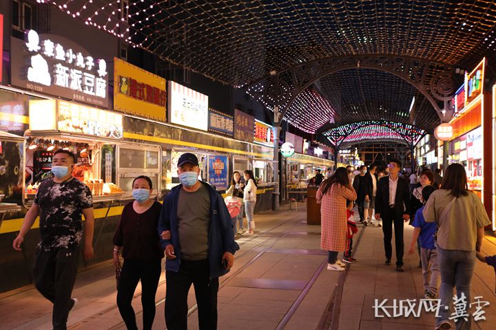 隨著夜色加深,公園北門外的老火車步行街成了張家口煙火氣最濃的地方。