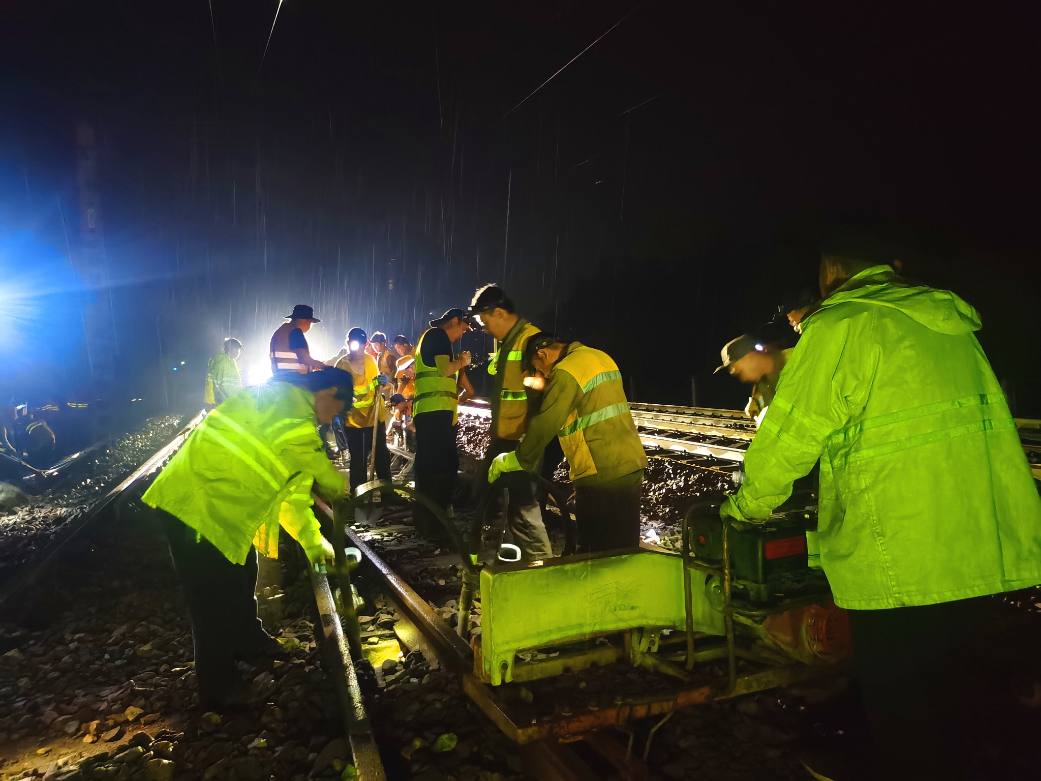 據介紹,本次京九鐵路衡水段“集中修”從5月20日開始,將持續至7月上旬。截至6月17日,已投入作業人員2200人次、大型養路機械11組,完成更換鋼軌28.287千米,更換枕木1.3萬根,搗固線路340.2千米,打磨線路295.55千米,大機搗固道岔141組,打磨道岔171組,排水不良鐵路基床換填工作已全部完成,大幅提高了京九鐵路線路設備質量。