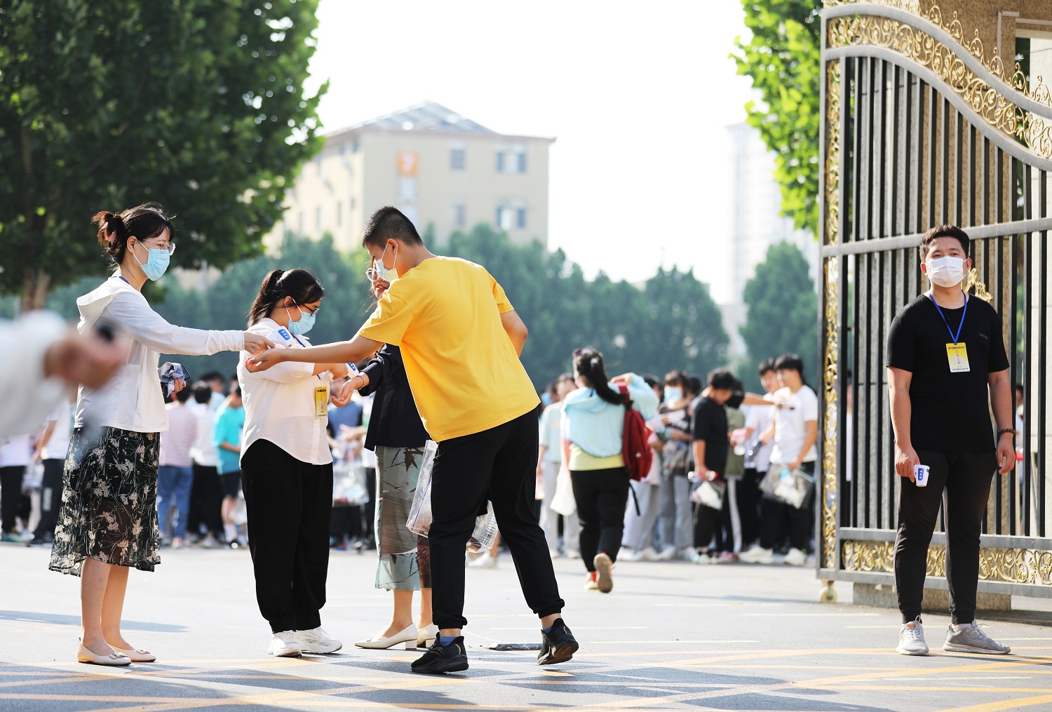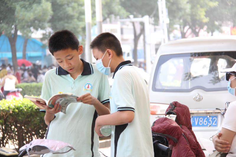 上午7時40分,記者在市三中考點看到,已經有考生和陪考家長提前“就位”,等候入場。有考生趁著最后的時間拿起課本,與同學共同復習,進行最后的沖刺。考生陸續到達考點,攜帶相關證件,排隊通過測溫通道進入學校。考點外,工作人員不時疏導現場秩序,提醒送考家長為孩子讓出通道,盡快離開考點,營造安靜環境。