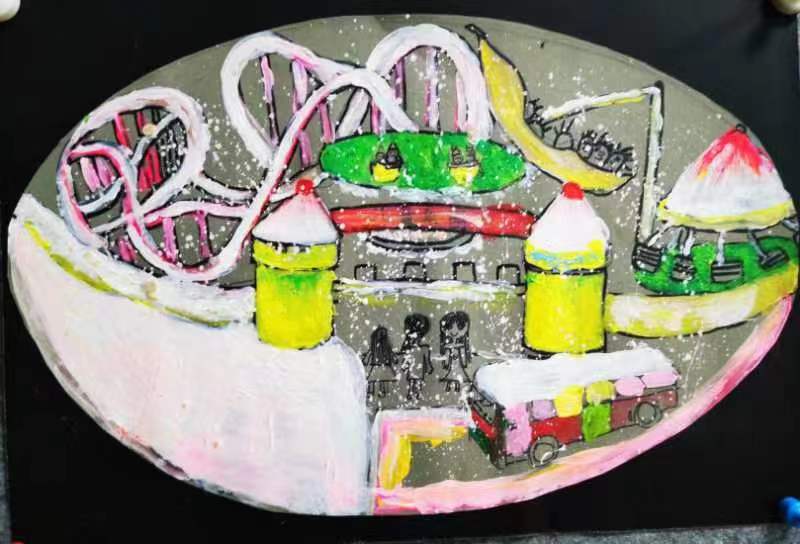 繪畫《飄雪的游樂場》 路然然(10歲) 作