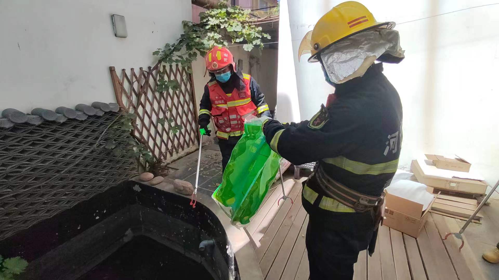 6月25日9時30分,冀州區水利胡同一居民家中出現約1米長蛇,這讓居民驚嚇之余不知所措,冀州消防滏陽西路消防救援站立即出動1輛搶險救援消防車、5名指戰員趕赴現場實施救援。
