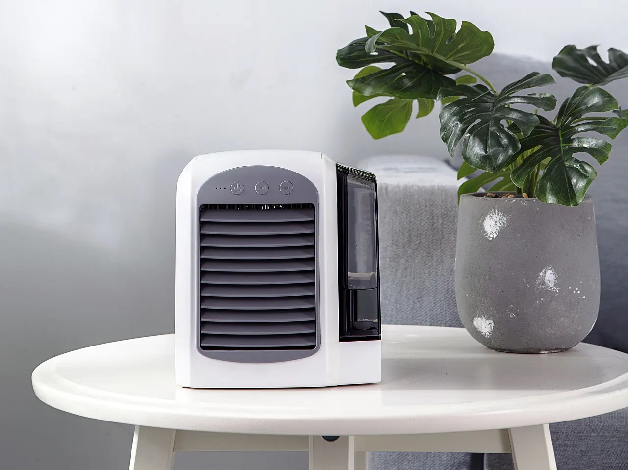 桌面制冷空調(diào)扇既可以當(dāng)作普通風(fēng)扇使用,也可搭配冰水吹出冰霧迅速降溫。使用時(shí),可將冷藏后的礦泉水瓶安裝在機(jī)器上,也可以直接向機(jī)器中加入冰塊。經(jīng)測(cè)試,室溫36℃時(shí),風(fēng)扇可直降1℃到3℃,加水可直降3℃到7℃,加冰水則可直降7℃到12℃。