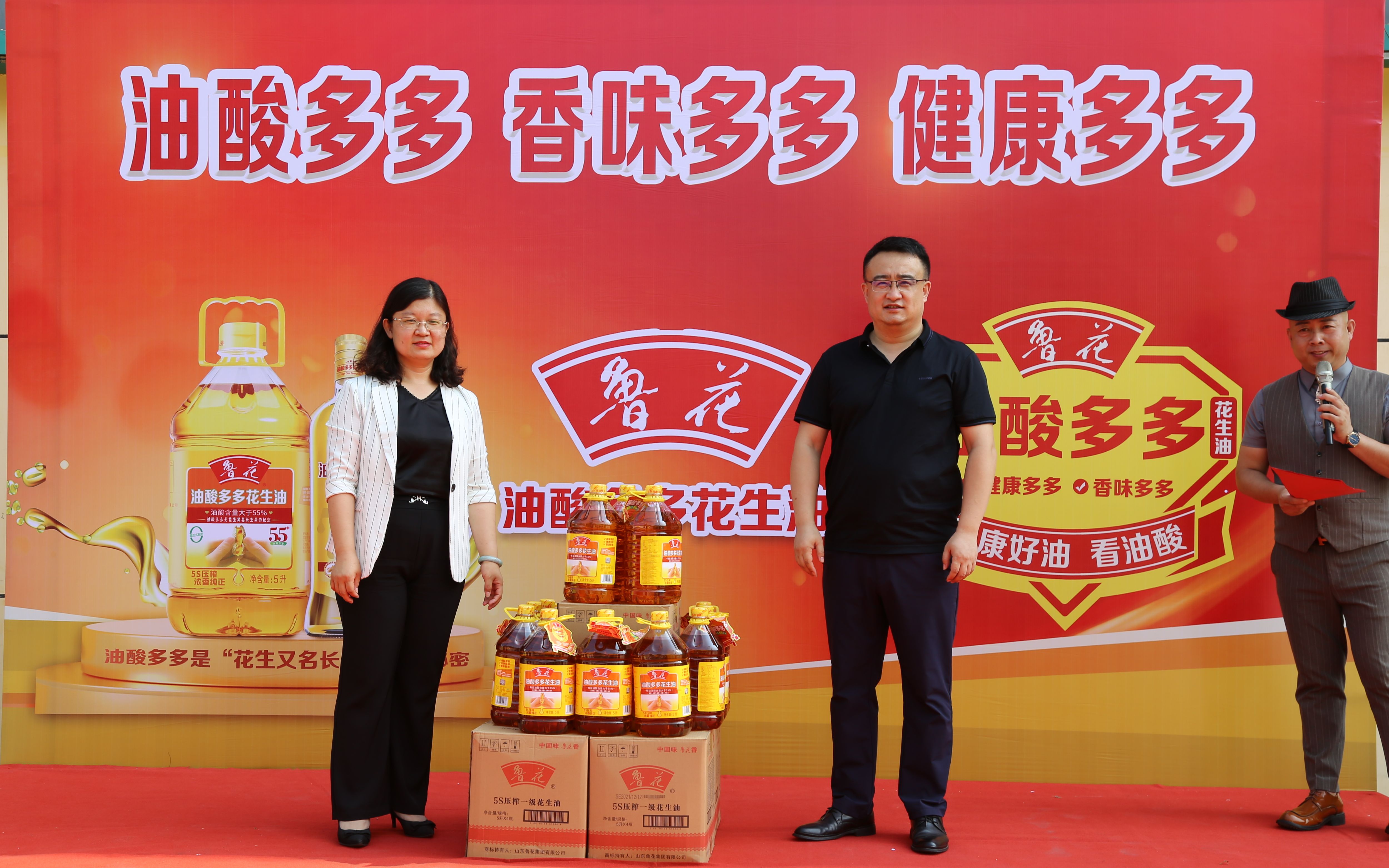 7月1日上午,山東魯花集團河北大區攜手衡百集團,在吉美超市廣場舉辦河北省首場油酸多多產品新品發布會,油酸多多56%系列以及75%系列花生油上市。魯花集團河北大區、魯花集團衡水分公司與衡百集團主要負責人參加了發布會。