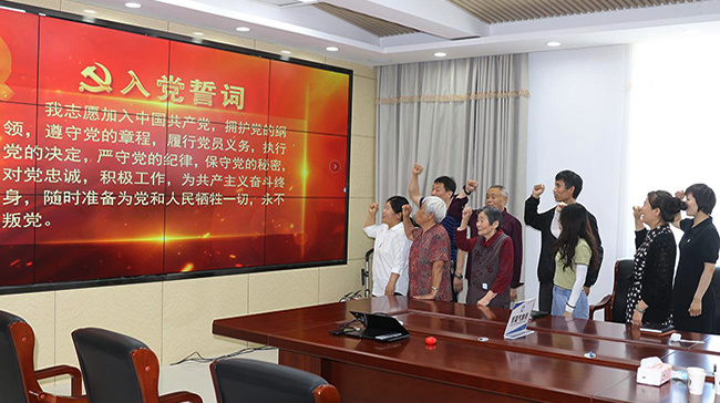 黨員干部職工重溫入黨誓詞,回顧黨的奮斗歷程和偉大成就。景縣融媒體中心供圖