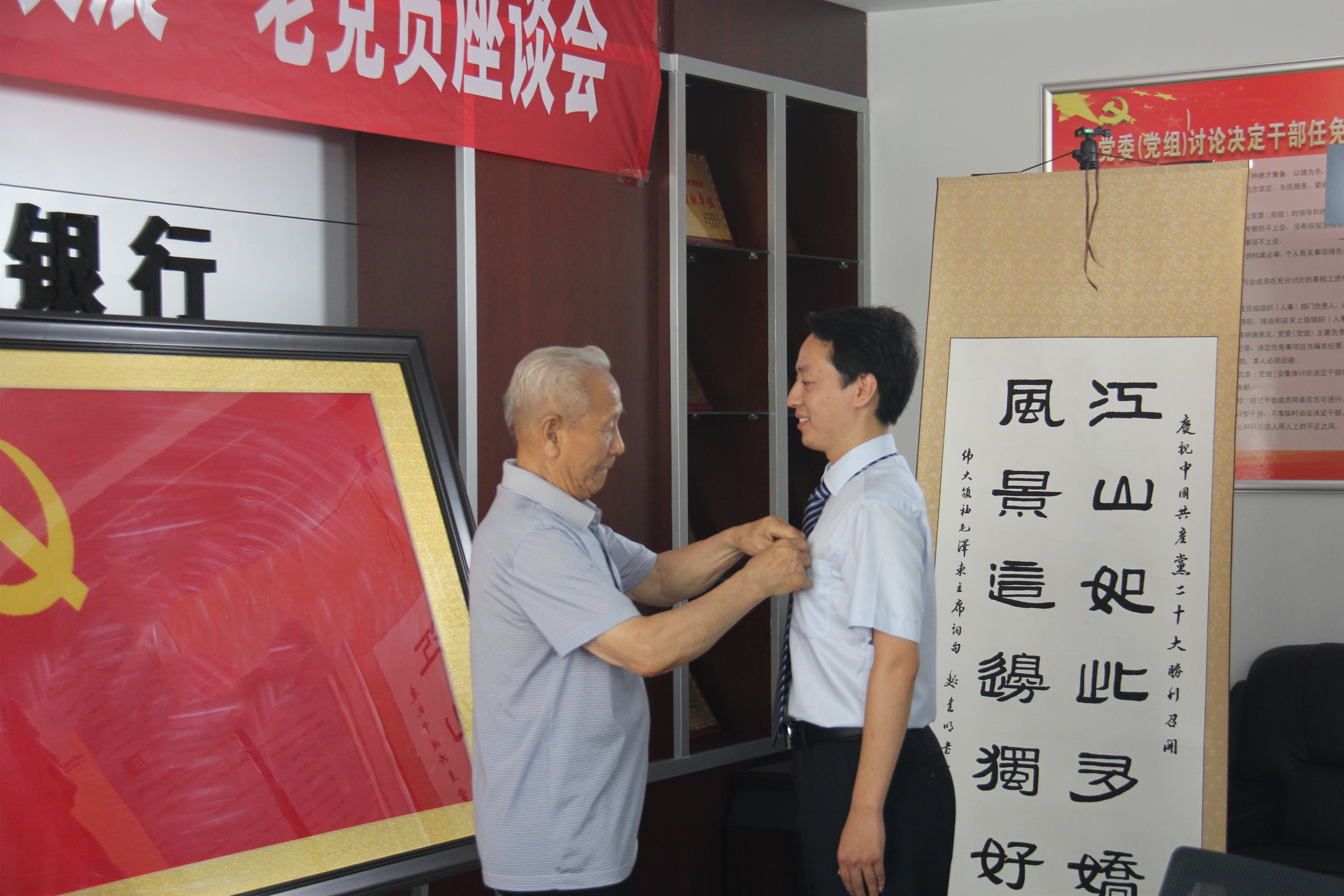 做好先鋒模范篇,發展問計老黨員。今年正值桃城農信成立70周年,衡水農商銀行的發展離不開一代代前輩們辛勤的付出,今后的發展更離不開一代代老領導們的關心和支持。為了表達對退休老黨員的關愛,從過去的經驗中汲取奮進力量,充分發揮老黨員的先鋒模范引領作用,該行圍繞“桃城農信七十年,砥礪前行話發展”主題邀請退休老干部歡聚一堂,共敘農信情,共商發展計,建言獻策,共同把農商事業做優做強。會上,光榮在黨五十年的八旬老黨員為新入黨黨員代表佩戴黨員徽章,深情寄語青年黨員干部。