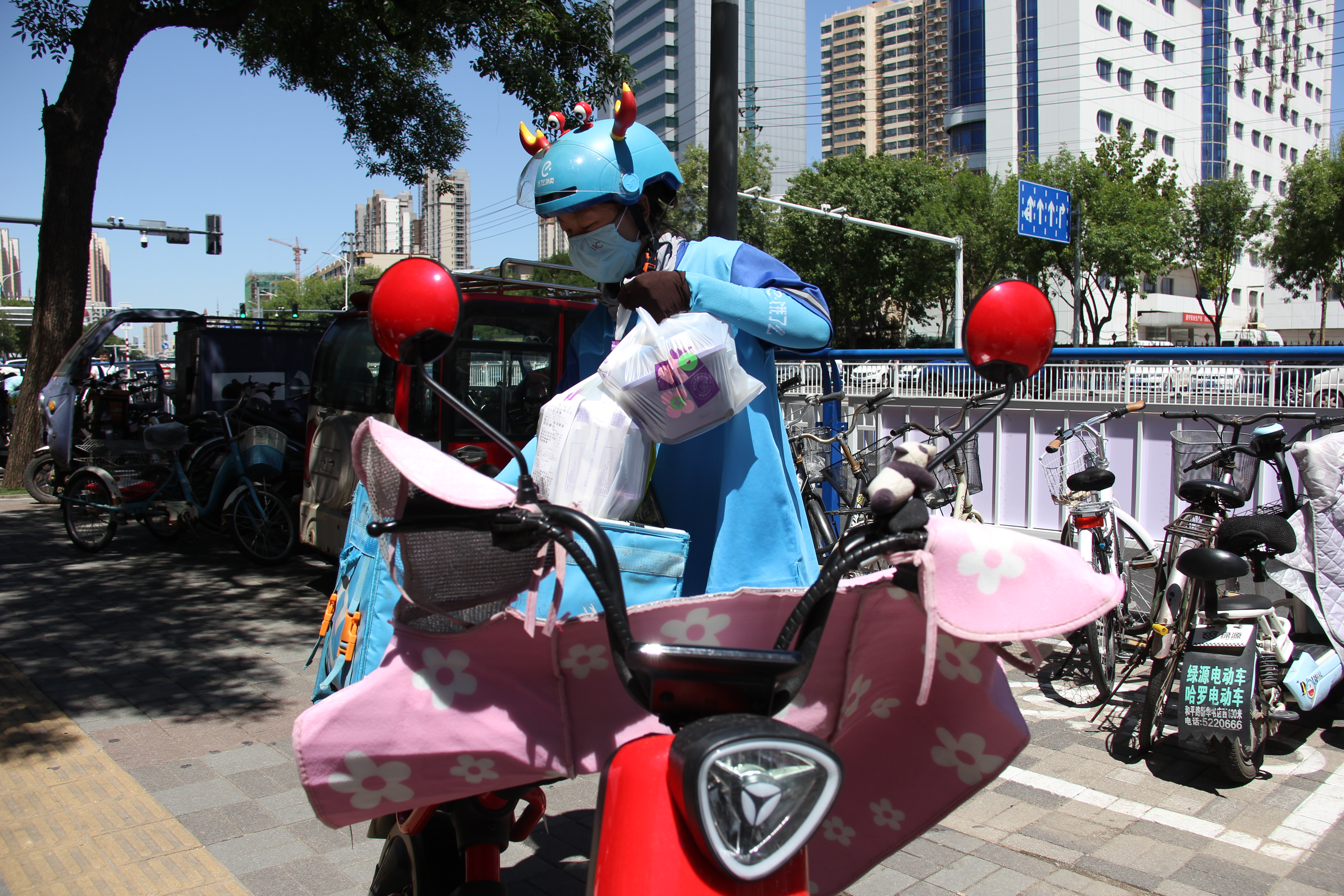 夏季,外賣員每日騎著電動車在烈日下穿行,他們爬樓梯、擠電梯一路小跑將外賣準(zhǔn)時送到顧客手中。今年34歲的梁慧欣就是眾多外賣員中的一員。