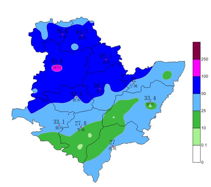 從7月11日下午開始,斷斷續續的降雨一直持續到12日上午。記者從衡水市氣象臺獲悉,截至12日8時,全市平均降水量38.3毫米,有1地達大暴雨,為深州東安莊135.6毫米。