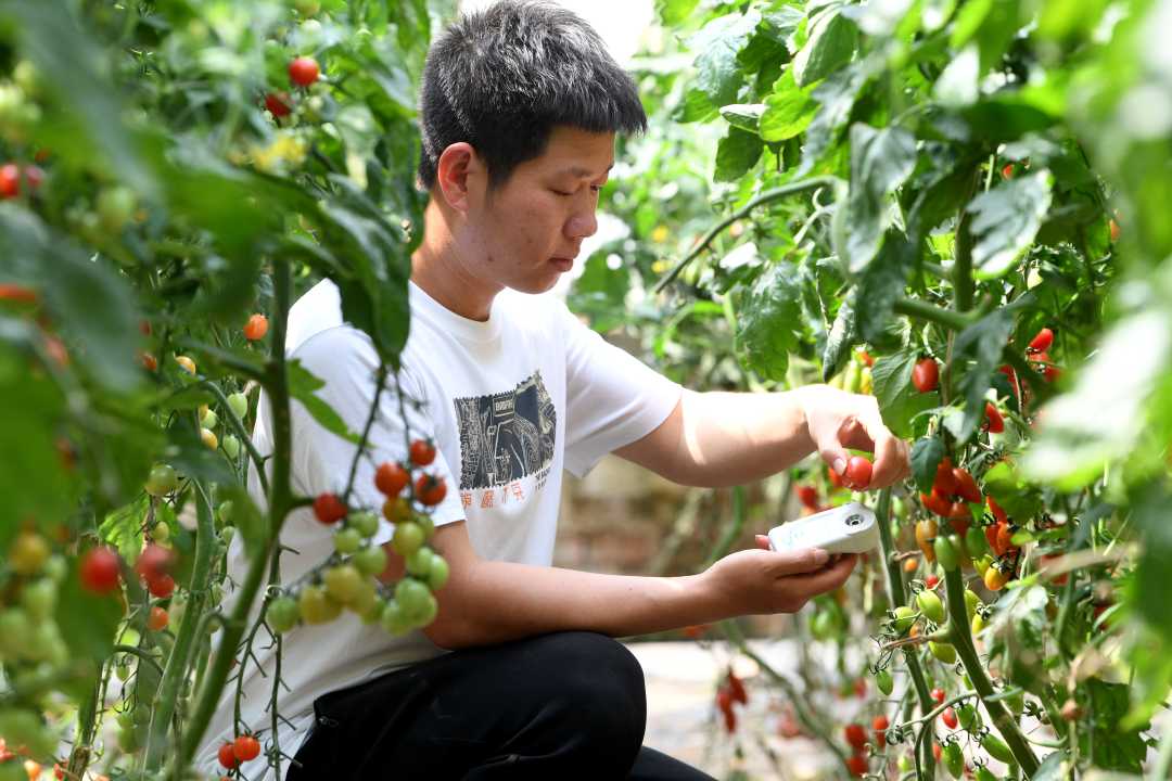 京津冀蔬菜科技測評示范中心工作人員在為櫻桃西紅柿測糖度。崔佳棟攝