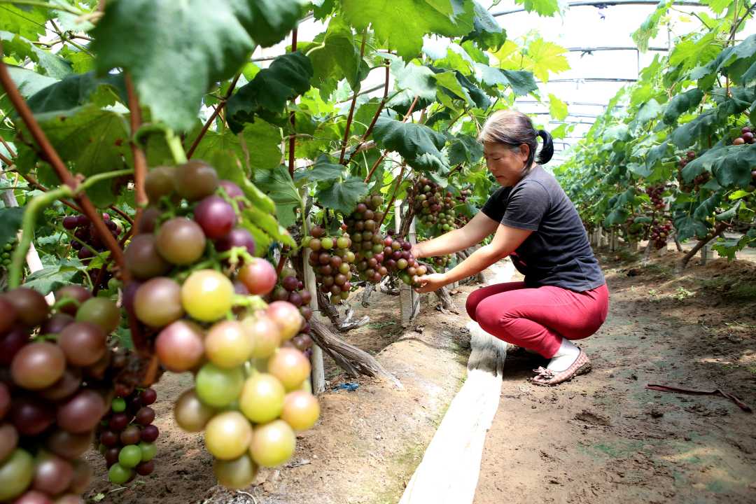 饒陽縣圣水村村民在大棚內(nèi)查看葡萄長勢。崔佳棟攝