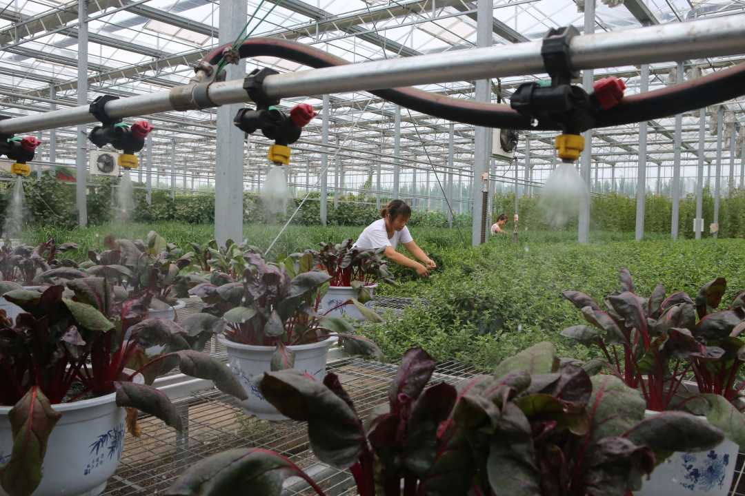 饒陽縣冠志農(nóng)業(yè)科技公司工人正在打理盆栽蔬菜。崔佳棟攝