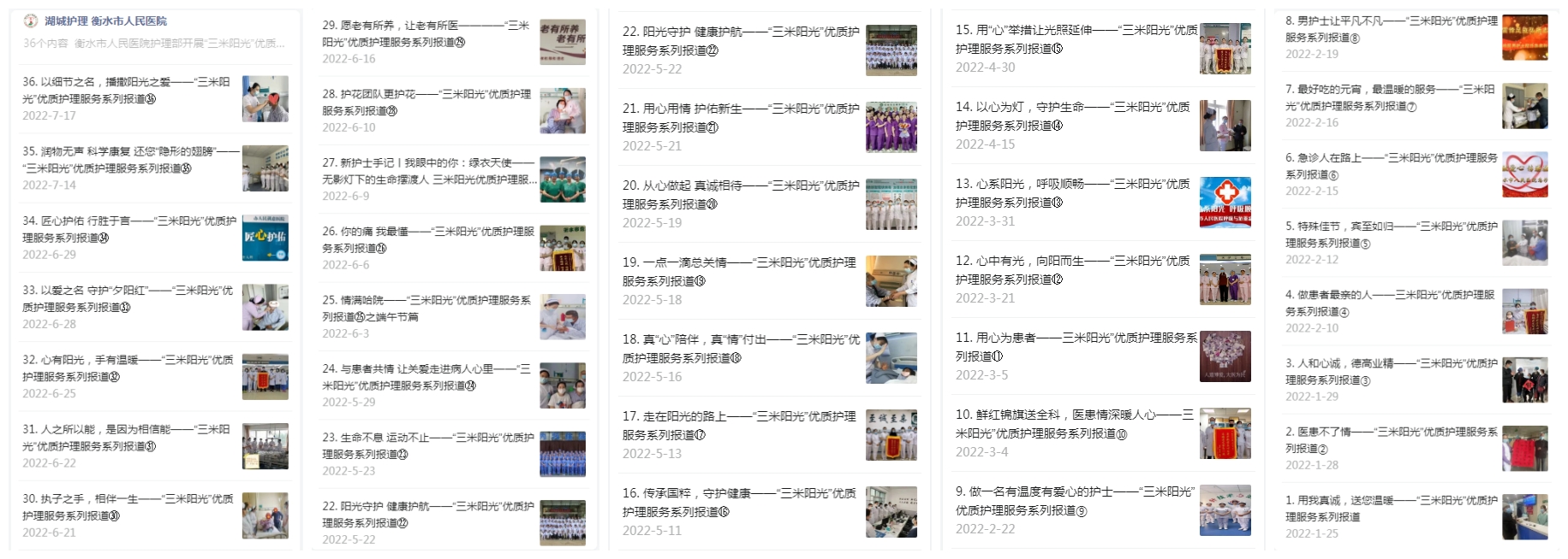 在“湖城護(hù)理 衡水市人民醫(yī)院”微信公眾號每期都推出“三米陽光”優(yōu)質(zhì)護(hù)理服務(wù)系列報(bào)道。