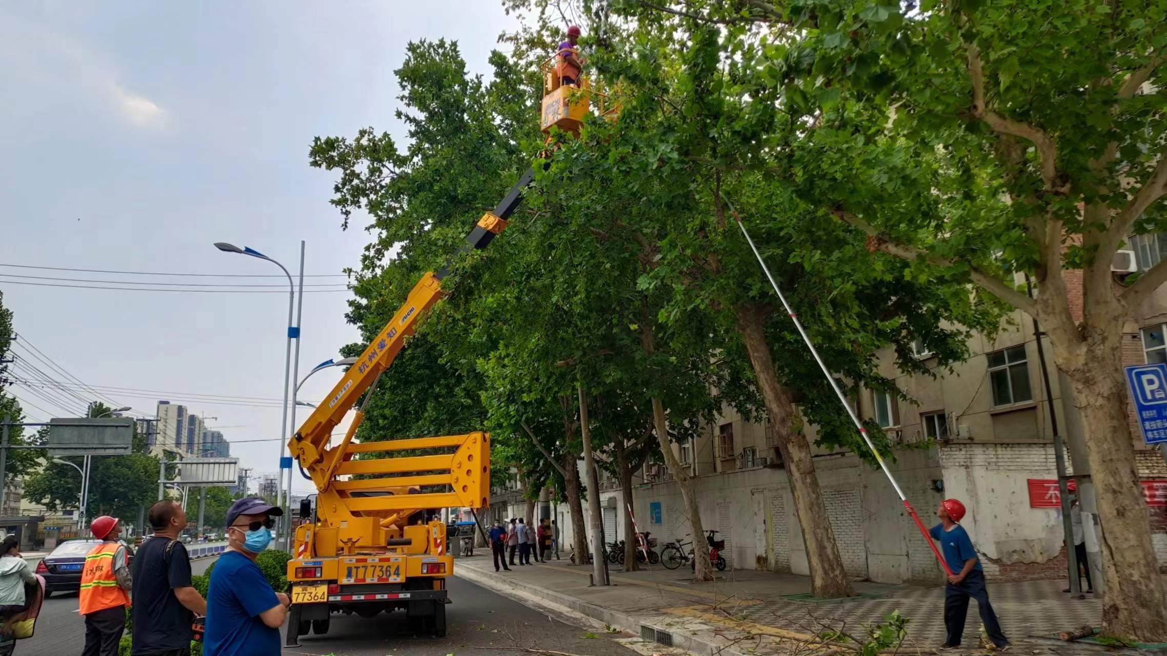 接到12345熱線承辦單后,相關部門迅速反應,安排人員及時根據綠化樹木的實際情況進行修剪,為居民和商戶們解憂。