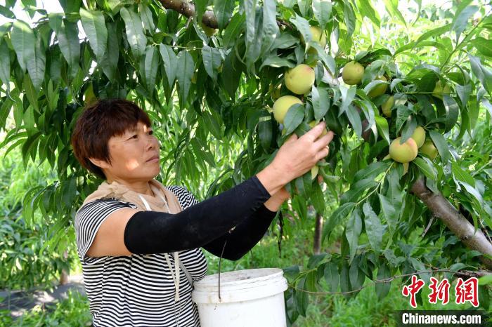 每年桃子成熟時是用工高峰期,每天有近百名務工人員活躍在桃園。來自附近村的村民張素蘭說,這個時節地里沒啥活,來這里打打工,每天能掙到100多元,補貼一下家用。