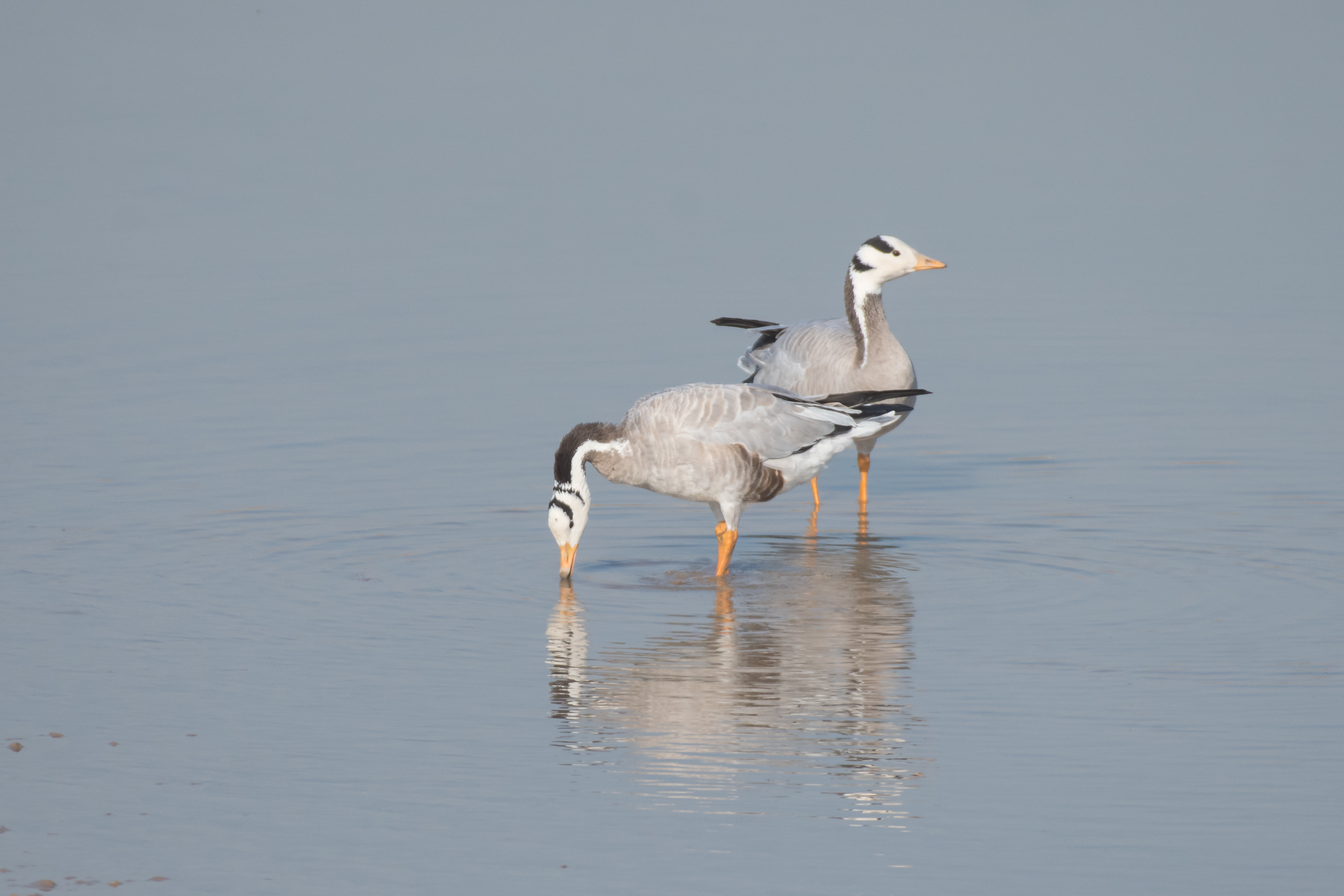 監測期間,天微微亮,石建斌與伙伴們已經在湖畔尋找最佳觀測點安營扎寨,長衣長褲大背包、高倍望遠鏡、記錄儀和防蚊蟲叮咬的藥膏,是他們的基礎裝備。為了不驚擾鳥類,他們常常在草棵子里一蹲就是幾個小時,衣服濕透,腿腳酸麻,但每監測到一種新的鳥類,全身的不適立刻一掃而光,興奮之情溢于言表。有一次,石建斌偶然發現,一對灰褐色的水鳥在湖邊飲水,白色的頭頂有兩道黑色帶斑。“斑頭雁嗎?”他下意識地喃喃自語。這極有可能是衡水湖發現的又一個新的鳥類物種。經過考察,他的想法得到印證:正是斑頭雁,隸屬于雁形目、鴨科,是中型雁類,體長62-85厘米,體重2-3千克;通體大都灰褐色,頭和頸側白色,頭頂有二道黑色帶斑,在白色頭上極為醒目;繁殖在高原湖泊,尤喜咸水湖,也選擇淡水湖和開闊而多沼澤地帶;越冬在低地湖泊、河流和沼澤地;性喜集群,繁殖期、越冬期和遷徙季節,均成群活動。主要以禾本科和莎草科植物的葉、莖、青草和豆科植物種子等植物性食物為食,也吃貝類、軟體動物和其他小型無脊椎動物。本次發現的這對斑頭雁為遷徙途中在衡水湖停歇棲息,一般不常見。