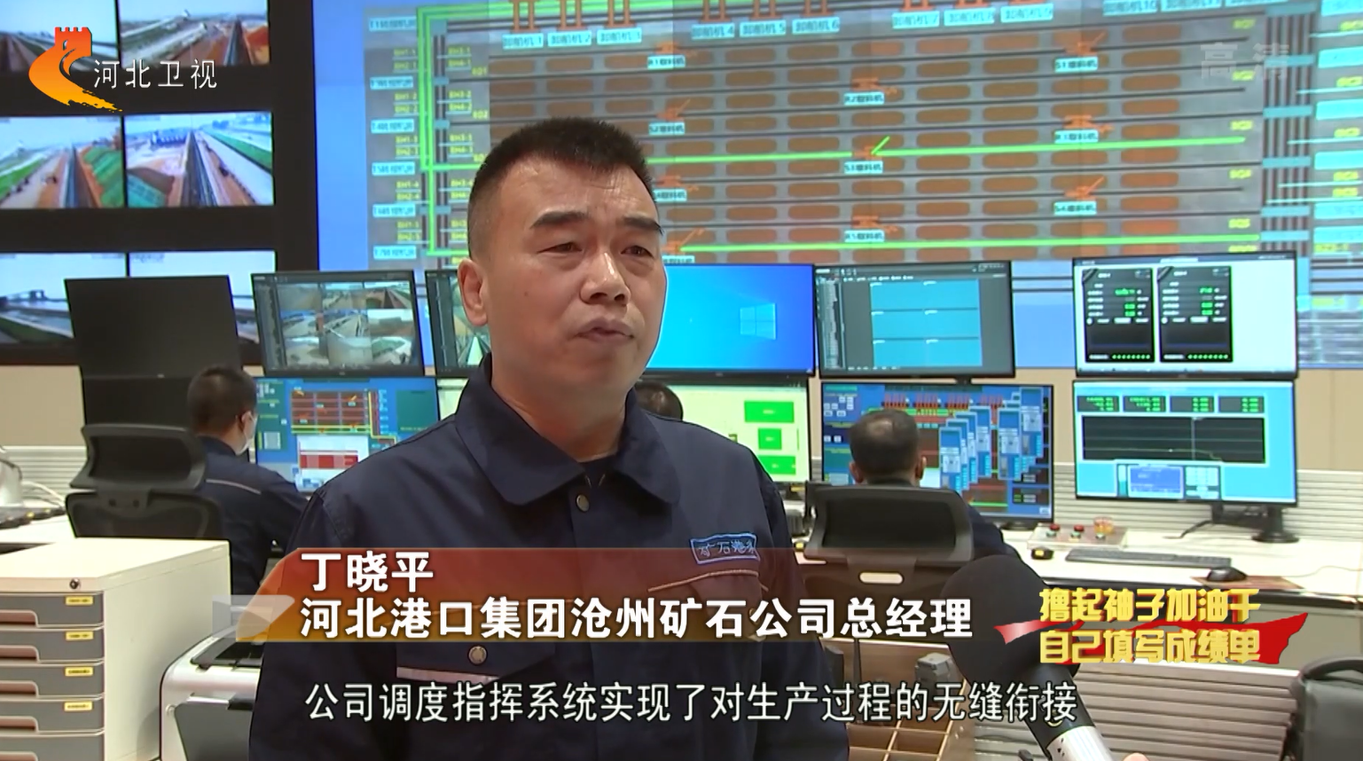 這里是黃驊港礦石碼頭的中央控制室,監(jiān)控大屏墻上就是各個作業(yè)區(qū)的實時監(jiān)控系統(tǒng)。在這里我們可以對礦石碼頭的裝卸工藝設備進行全方位的監(jiān)控和管理。