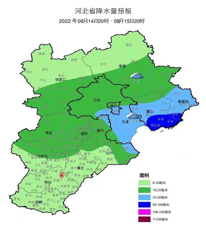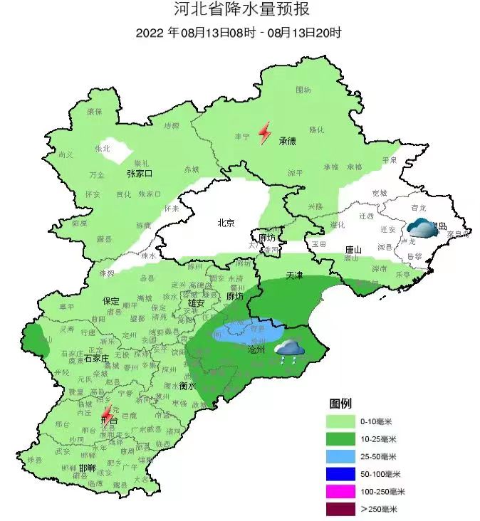 具體天氣預報為:8月12日夜間:陰有陣雨或雷陣雨,局地中雨,偏東風1~2級,最低氣溫24~25℃。8月13日白天:多云間陰有分散性陣雨或雷陣雨,偏東風2~3級,最高氣溫31℃左右;13日夜間:陰有分散性陣雨或雷陣雨,偏東風2~3級,最低氣溫24~25℃。8月14日,多云轉陰有雷陣雨,氣溫32~26℃。