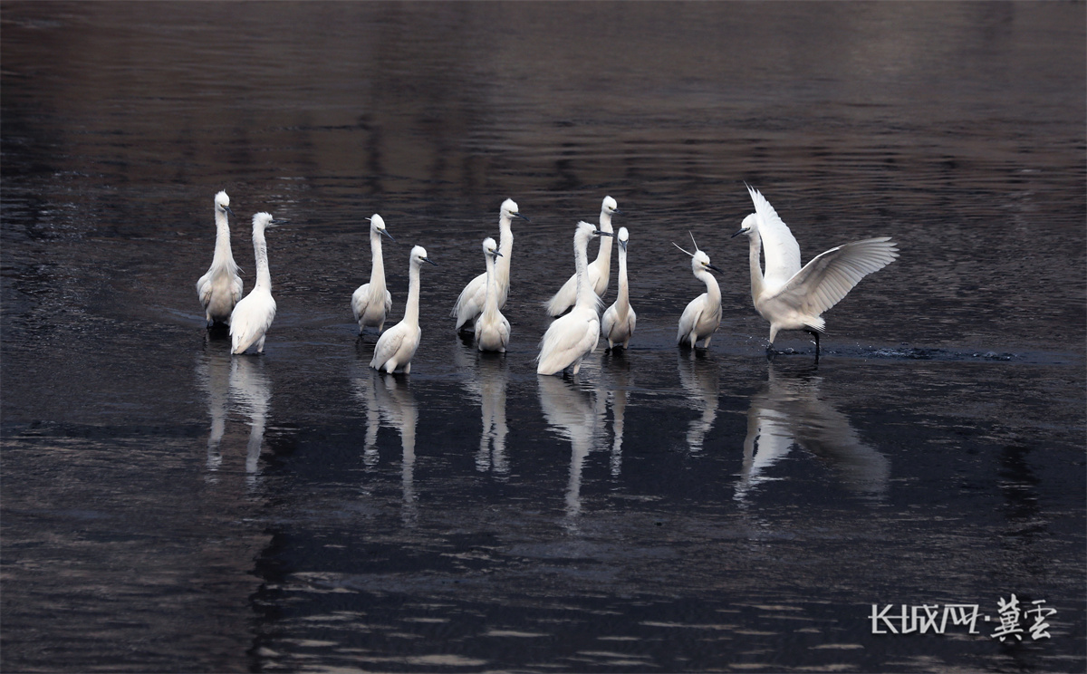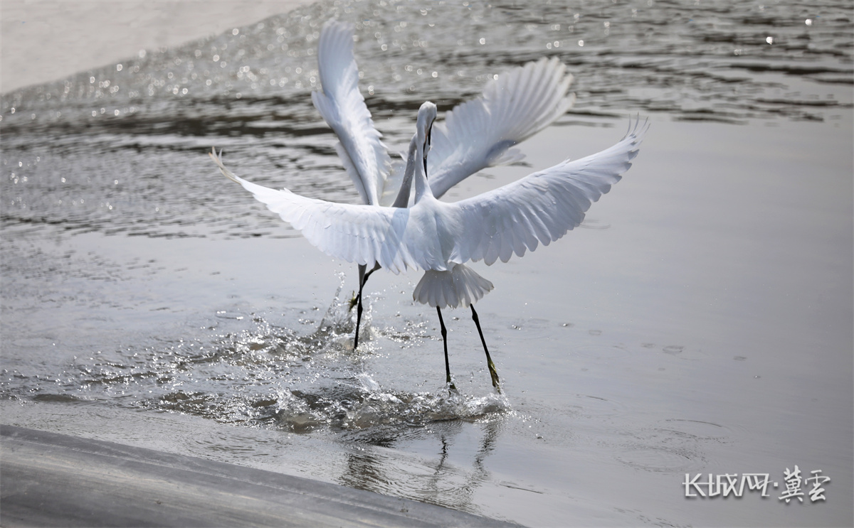 滏陽河上嬉戲的白鷺。楊元杰 攝