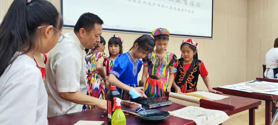 活動期間,新疆的少先隊員們來到武強年畫博物館,聽取小講解員的講解,詳細了解武強年畫的發展歷程和制作工藝,體驗了年畫的印制過程。新疆的少先隊員還表演了精彩的民族舞蹈和歌曲,兩地師生互贈了禮物,大家臉上洋溢著喜悅的笑容。
