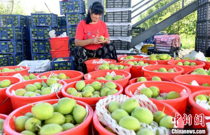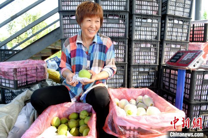 “在這打工不累,都是計件工資,一天能有100多元的收入,又不耽誤家里的活兒,守著家掙錢的感覺很踏實。”正在地頭進行雪青梨分裝的馮塔頭村村民葛彩珍說。
