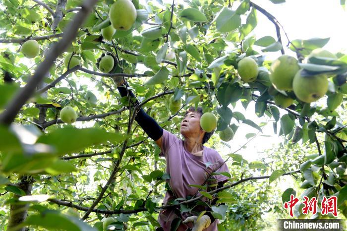 果農在采摘梨果。 苗鳳強 攝