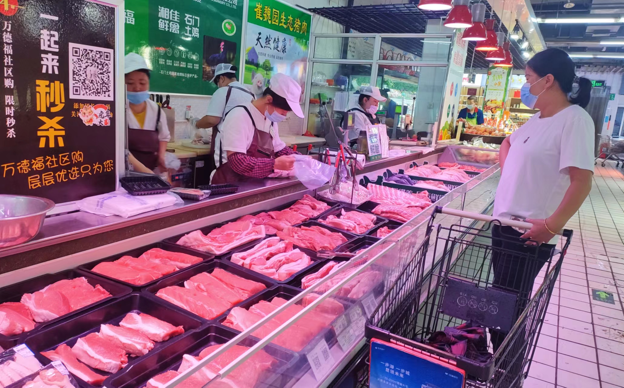 當(dāng)日上午8時(shí)30分,在萬(wàn)德福超市前進(jìn)街店入口處記者看到,三三兩兩的顧客戴著口罩結(jié)伴而來(lái),按照工作人員的指引,積極配合測(cè)溫、掃碼后進(jìn)入超市。在蔬果區(qū),貨架上各類新鮮蔬菜瓜果擺放得滿滿當(dāng)當(dāng),工作人員還在不斷補(bǔ)貨;在生鮮區(qū),雞肉、豬肉和牛羊肉等食品應(yīng)有盡有,幾位市民正在精心挑選;在糧油區(qū),各品牌的米、面、油等商品有序排放,價(jià)格平穩(wěn)。“前幾天買的東西吃得差不多了,今天超市一開(kāi)門我就趕緊來(lái)買一些蔬菜、水果,轉(zhuǎn)了一圈發(fā)現(xiàn),超市里物品齊全、價(jià)格也都挺合理。”正在挑選香蕉的市民車女士說(shuō)。