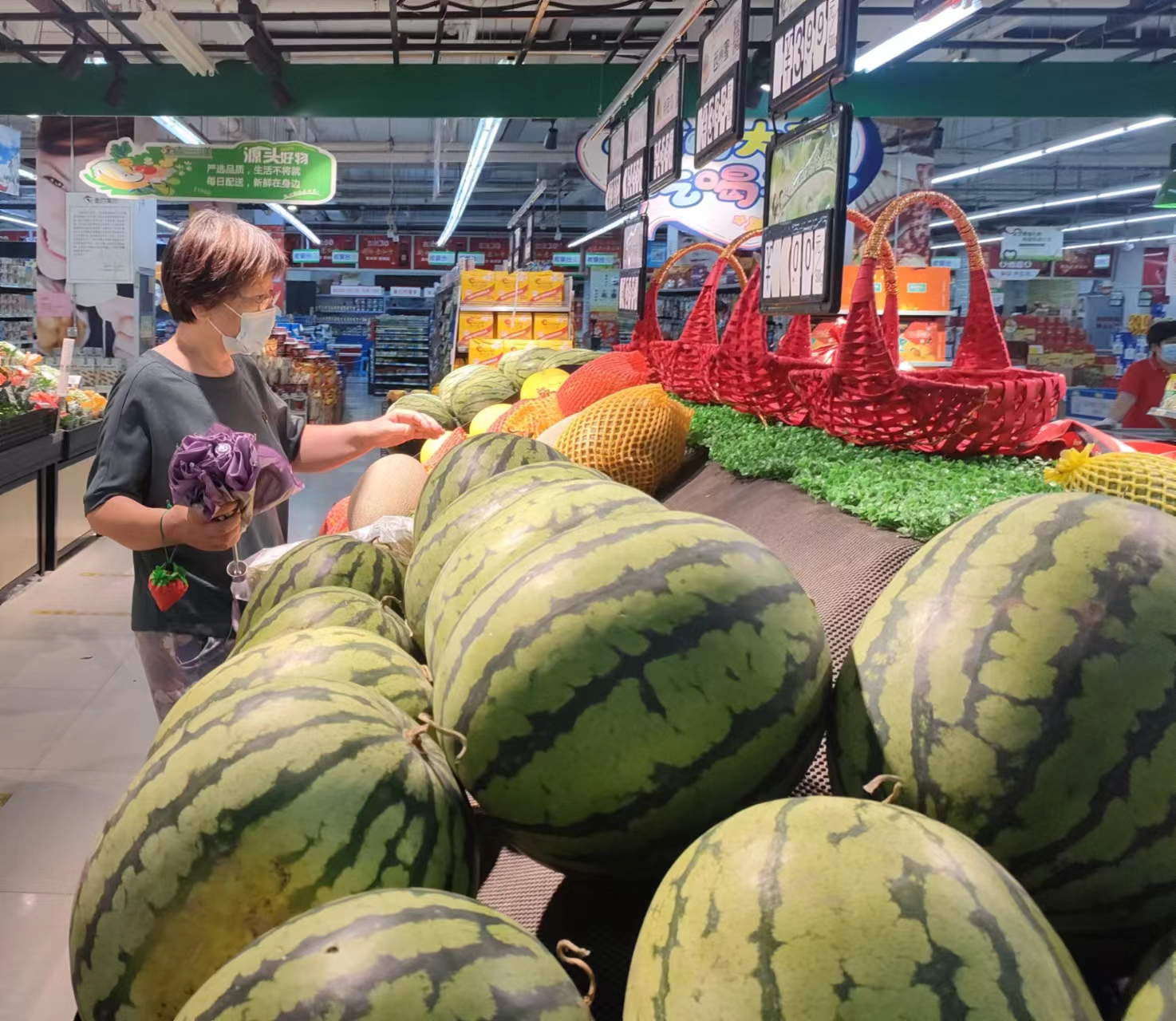 上午9時(shí)30分,記者在吉美超市休閑廣場(chǎng)店看到,工作人員正耐心引導(dǎo)前來(lái)購(gòu)物的市民保持距離,有序排隊(duì)掃碼、測(cè)溫,現(xiàn)場(chǎng)秩序井然。超市內(nèi),各類生活物資儲(chǔ)備充足,米、面、油、蔬菜、水果、肉類等必需品一應(yīng)俱全,價(jià)格穩(wěn)定,市民正有序購(gòu)買商品。“今天吃完早飯后,我和老伴就騎三輪來(lái)超市購(gòu)物,你看我買了滿滿一大袋子,里面有西瓜、葡萄、土豆、韭菜、豬肉,還有酸奶。”市民陳阿姨說(shuō)。
