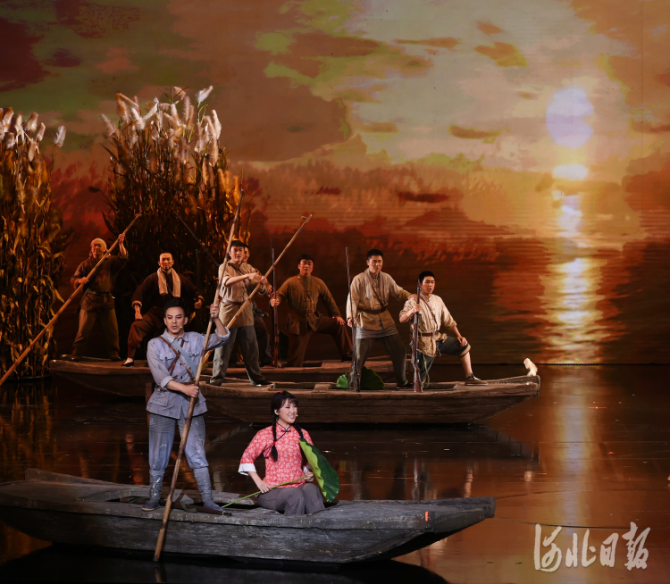 8月23日晚,由河北省藝術中心出品的民族歌劇《雁翎隊》,在河北省藝術中心激情上演。波光閃動的白洋淀、激烈緊張的戰斗、蕩氣回腸的歌曲……近兩個小時的演出,藝術地再現了雁翎隊的傳奇故事,再現了燕趙兒女在淀泊中的英勇斗爭,贏得現場觀眾熱烈的掌聲。
