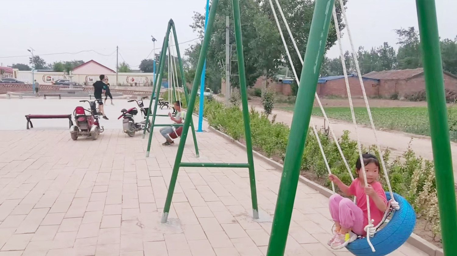 南顧城村就地取材,用村里汽配廠的下腳料、廢舊輪胎等建成了游園。張米雪 攝