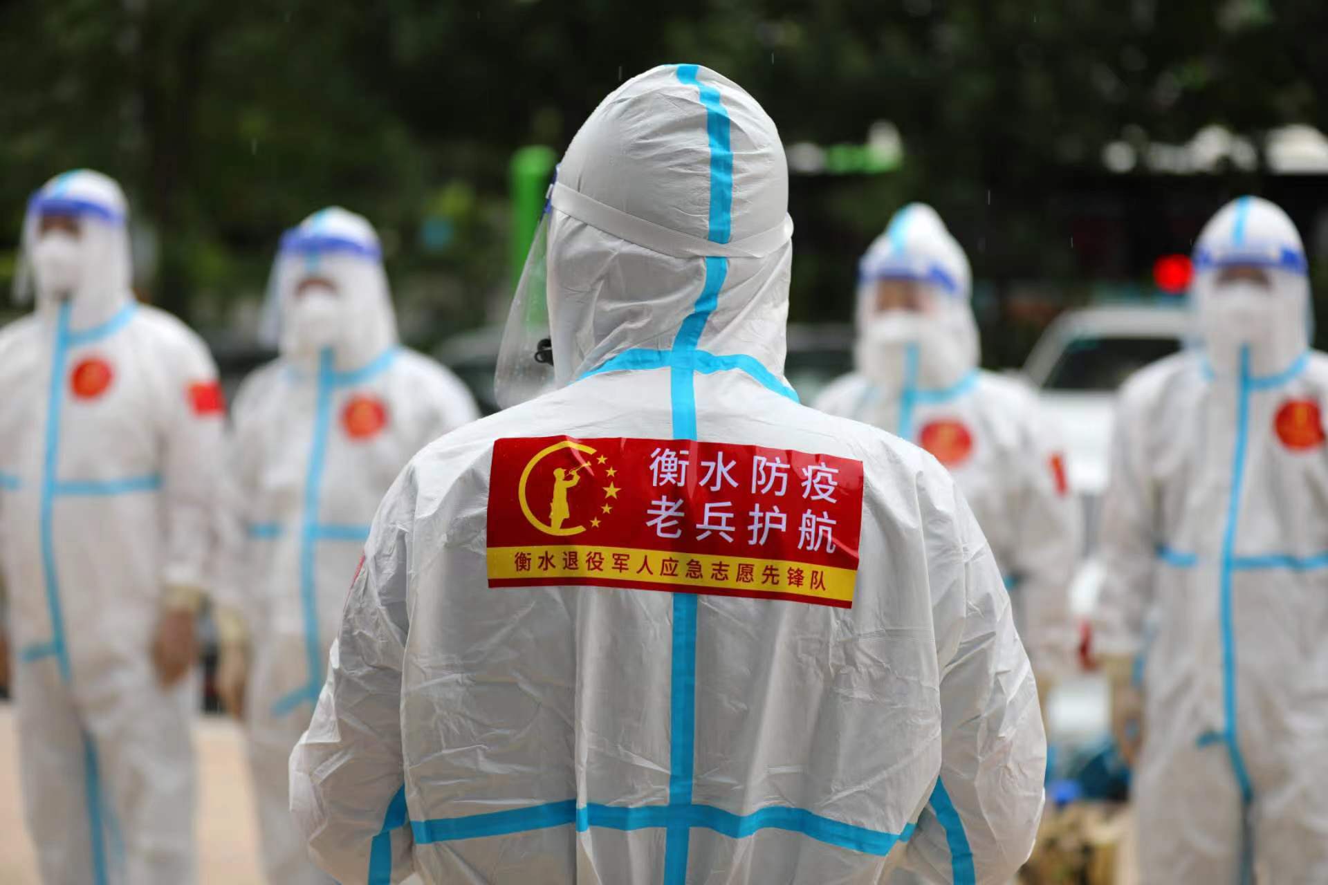 8月28日,退役軍人應急志愿先鋒隊組織20余名隊員在衡水火車站開展消殺作業,退伍軍人、志愿服務西部的“最美”新娘崔哲參加志愿消殺服務。