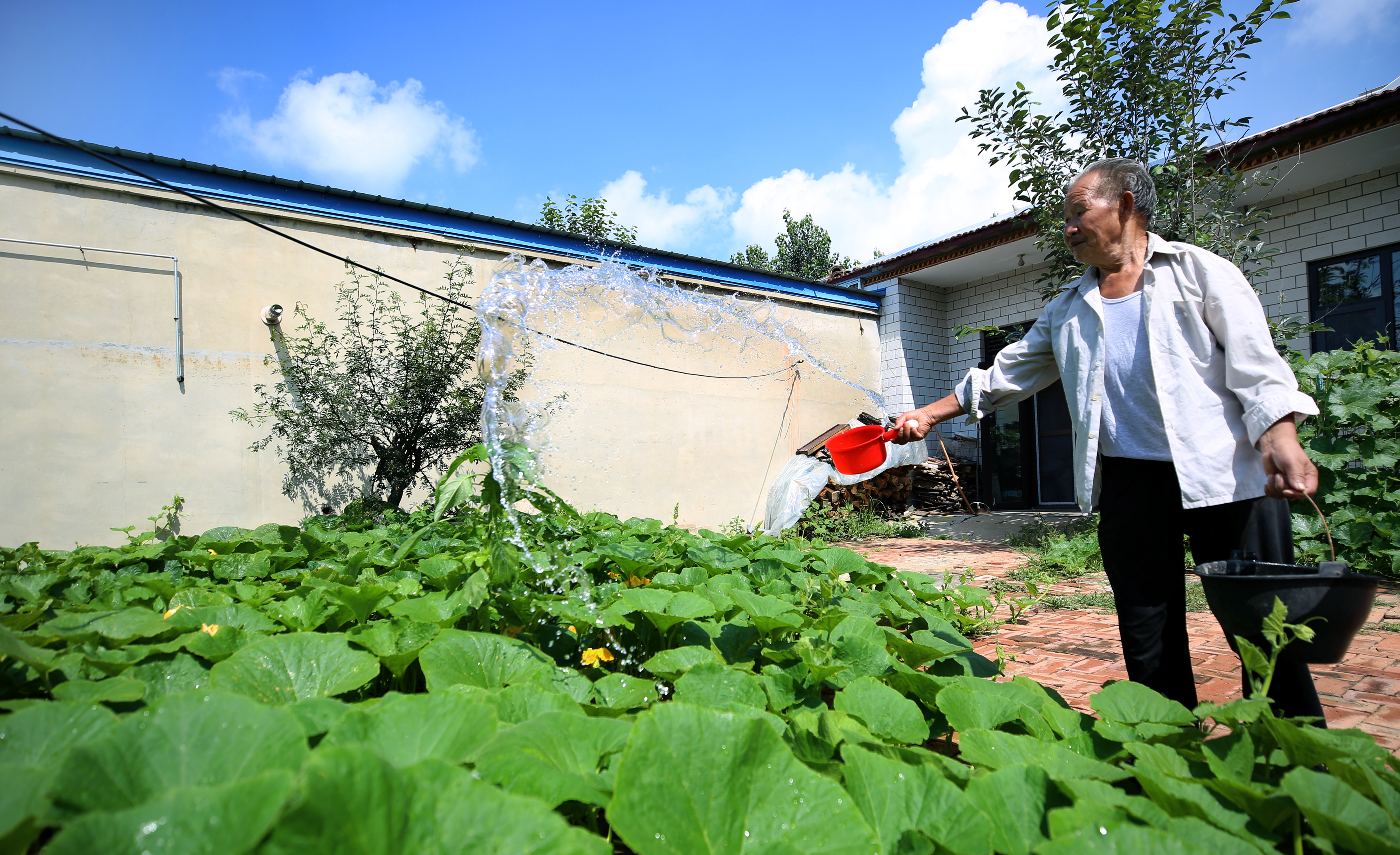 景縣苦水營村村民正在用長江水澆菜。
