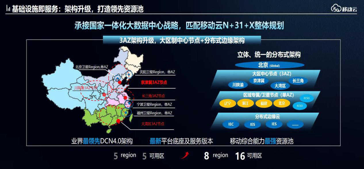 7月以來,中國移動先后發布了移動云的雙3AZ長三角節點、京津冀節點等節點。這意味著移動云3AZ節點將全面覆蓋全國四大熱點經濟區域,移動云算力網絡布局實現全面提升。