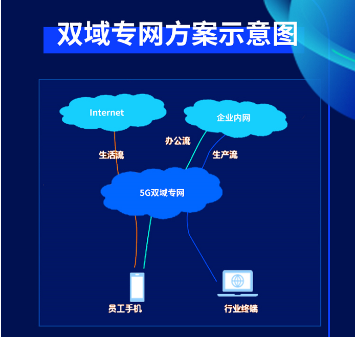 5G雙域?qū)>W(wǎng)充分考慮“核心數(shù)據(jù)不外流”的各類場景,可對公網(wǎng)、辦公內(nèi)網(wǎng)進行識別和數(shù)據(jù)的有效分流,將辦公數(shù)據(jù)請求分流至辦公內(nèi)網(wǎng)處理完成,實現(xiàn)辦公內(nèi)網(wǎng)安全隔離訪問。