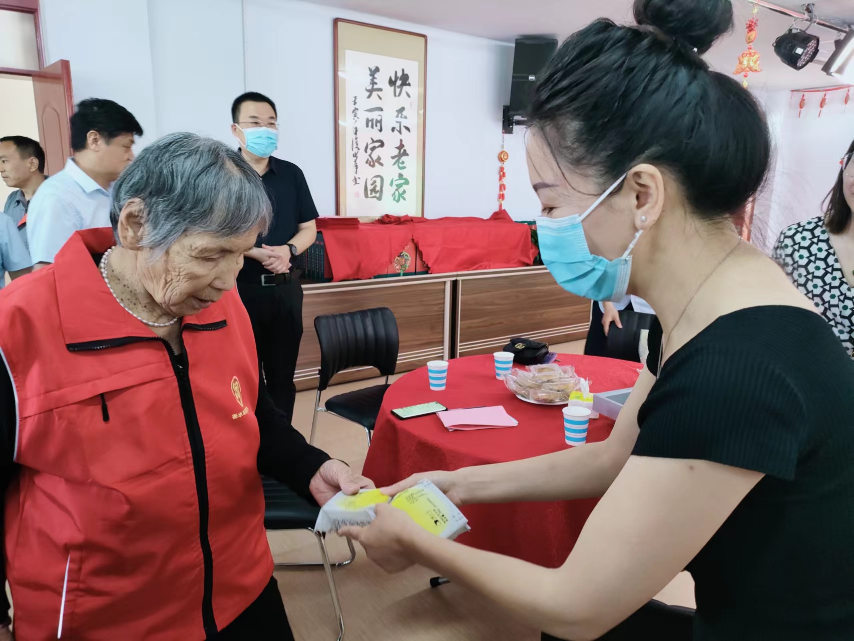 “大爺,送您一盒月餅,祝您中秋節(jié)快樂。”“這是我們店自制的月餅,您嘗嘗……”當日上午,在衡水市老年養(yǎng)護中心多功能廳內(nèi),禧山禾烘焙店負責人將一盒盒精心準備的月餅送到每位老人手中,傳遞著溫暖。對于行動不便的老人,他們還將月餅送到老人的房間,并與老人們拉家常,了解他們的生活、身體情況。