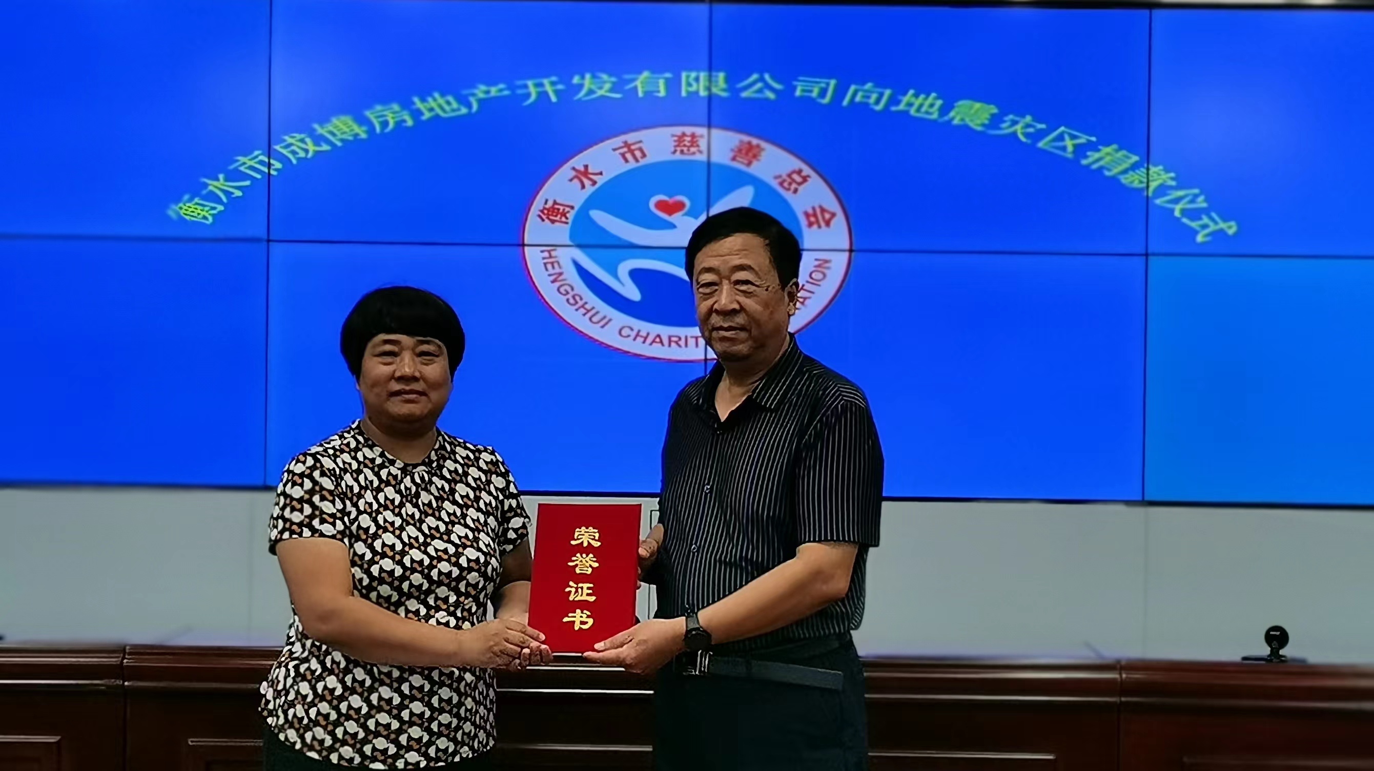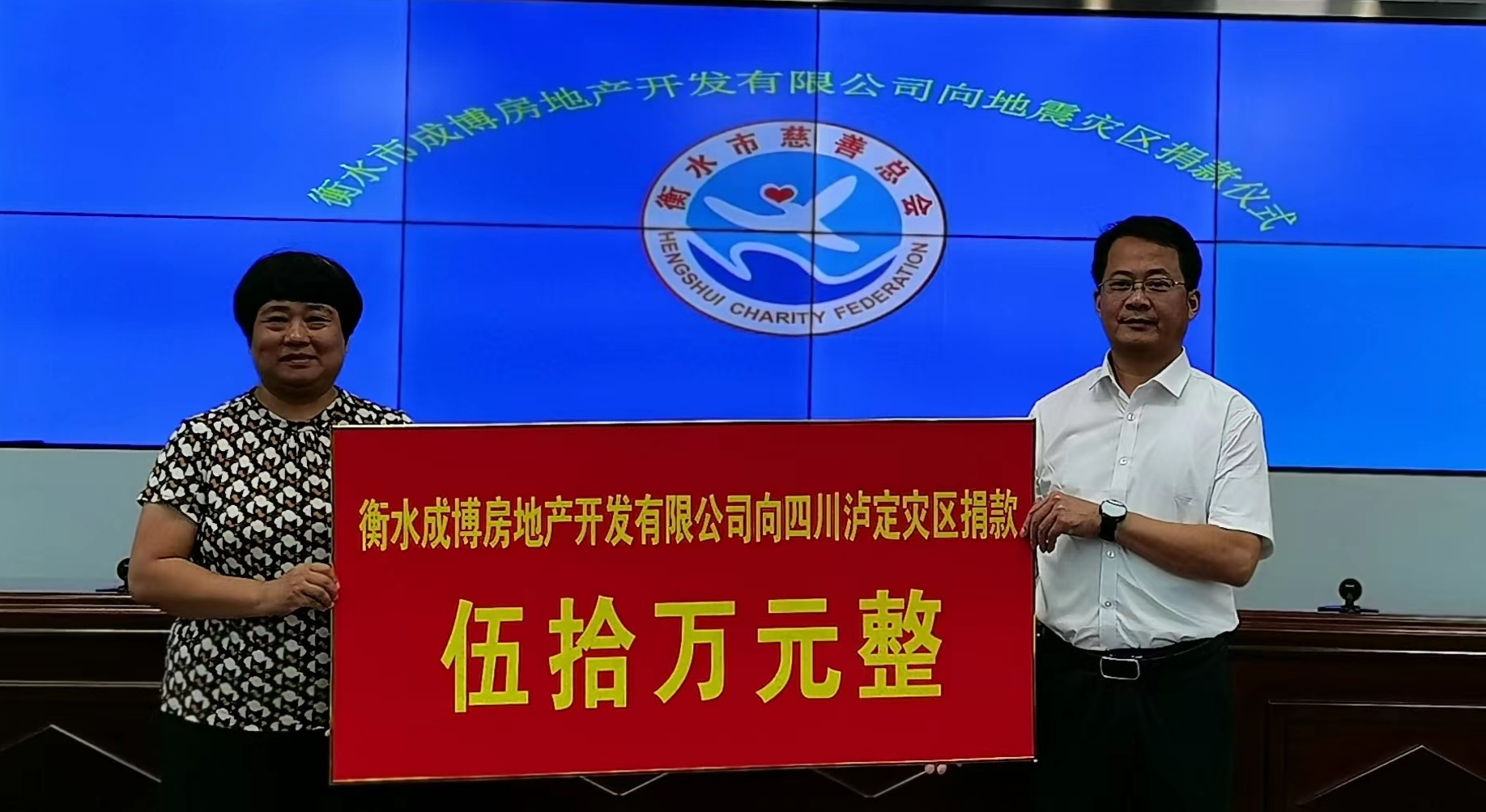 四川省瀘定地震災情,牽動著全國人民的心。9月9日,衡水成博房地產開發有限公司通過市慈善總會,向四川瀘定災區捐款50萬元,用于幫助災區學校重建修繕。