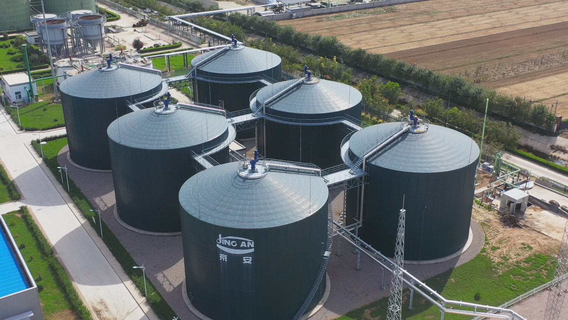 在綠樹成蔭的京安現(xiàn)代農(nóng)業(yè)園區(qū)內(nèi),數(shù)個(gè)大型厭氧發(fā)酵罐引人注目,應(yīng)用專利預(yù)處理技術(shù),糞污在這里面發(fā)酵產(chǎn)生沼氣,可年產(chǎn)657萬立方米沼氣,每年能發(fā)1500余萬千瓦時(shí)的綠電。